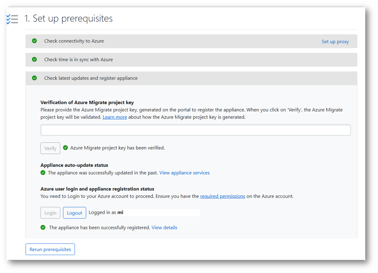 Figura 2: verifica dei prerequisiti dello Step 1 di Azure Migrate