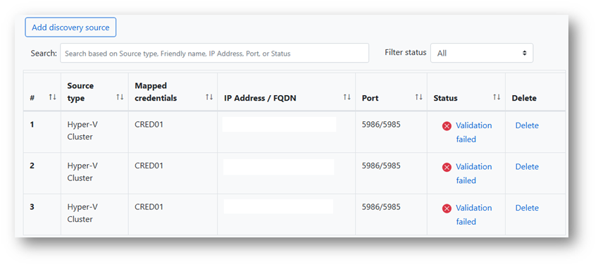 A seguito di queste modifiche siamo stati in grado di eseguire la discovery di tutti i server parte del cluster Hyper-v oggetto dell’attività.