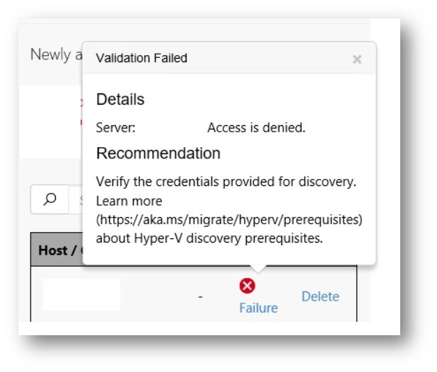 Fixing Azure Migrate – Errore durante la discovery di Host o Cluster Hyper-V in Azure Migrate