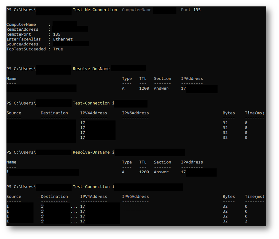 Figura 7: Verifica collegamento WinRm dalla VM azure migrate ai nodi del cluster Hyper-v