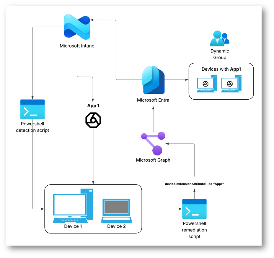 Questi limiti spiegano perché l’approccio PowerShell + Graph ha perfettamente senso. Sostanzialmente non bypassa i dynamic group, ma li alimenta con un attributo directory in linea con ciò che il device sa di possedere, rendendo la regola dinamica semplice, stabile e sostenibile anche nel tempo.