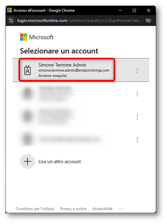 Nella prima parte definiamo i parametri dell’App Registration (Tenant ID, Client ID e Client Secret) e richiediamo un access token con il flusso OAuth2 client credentials. In pratica l’applicazione ottiene un token valido per Microsoft Graph utilizzando lo scope https://graph.microsoft.com/.default, che corrisponde ai permessi applicativi assegnati e approvati al capitolo “Creazione App registration” (vedi Figure 9 e 10 per admin consent). Una volta ottenuto il token, lo includiamo nell’header Authorization come bearer token, insieme al Content-Type JSON.