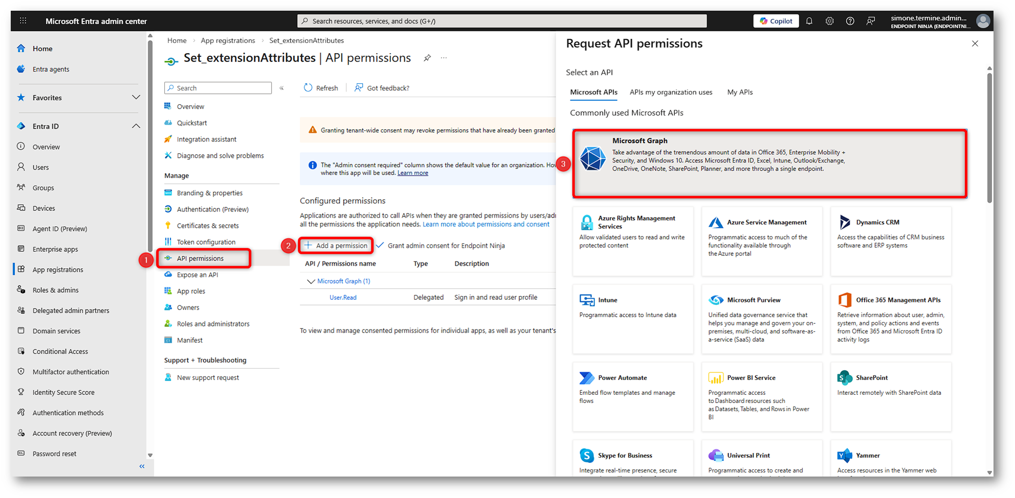 In questa demo usiamo i permessi application perché lo script deve poter aggiornare l’oggetto device in modo automatico. Infine, è bene citare Graph Explorer; un client web che permette di inviare richieste a Microsoft Graph e visualizzare le risposte. È utilissimo per verificare rapidamente che un attributo sia stato scritto correttamente sull’oggetto device e, se necessario, per eseguire rollback con un PATCH manuale.