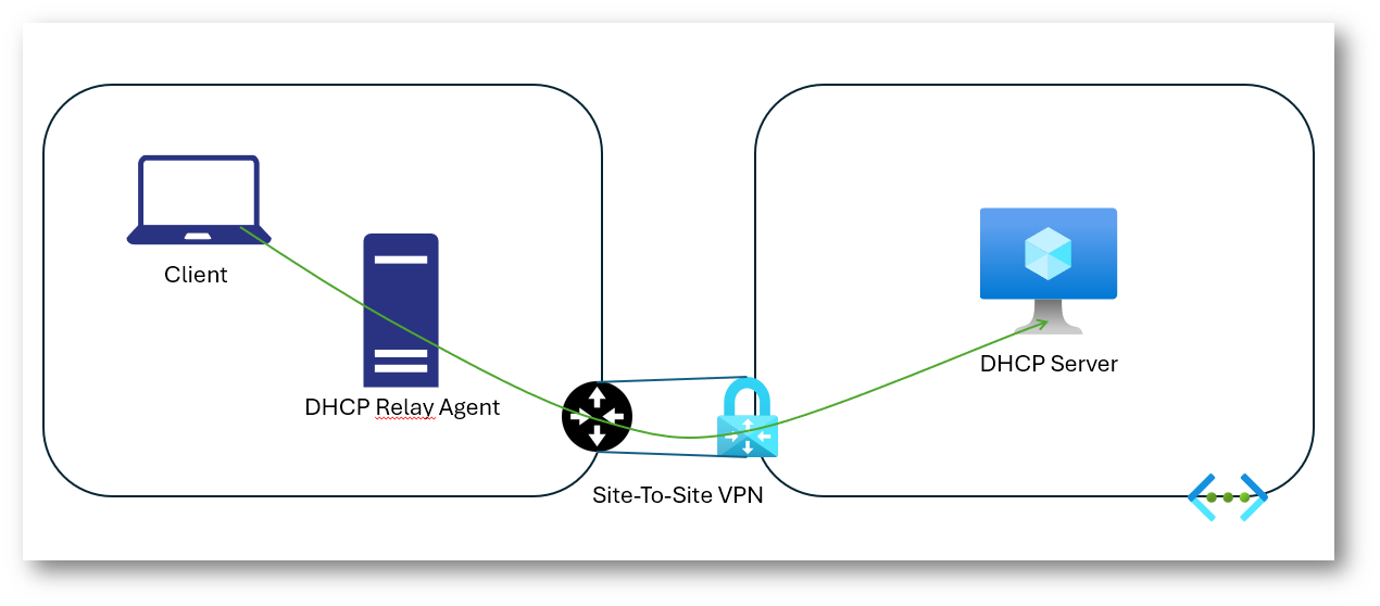 3. Il relay inoltra la richiesta in unicast al server DHCP in Azure tramite la connessione Site-to-Site VPN.