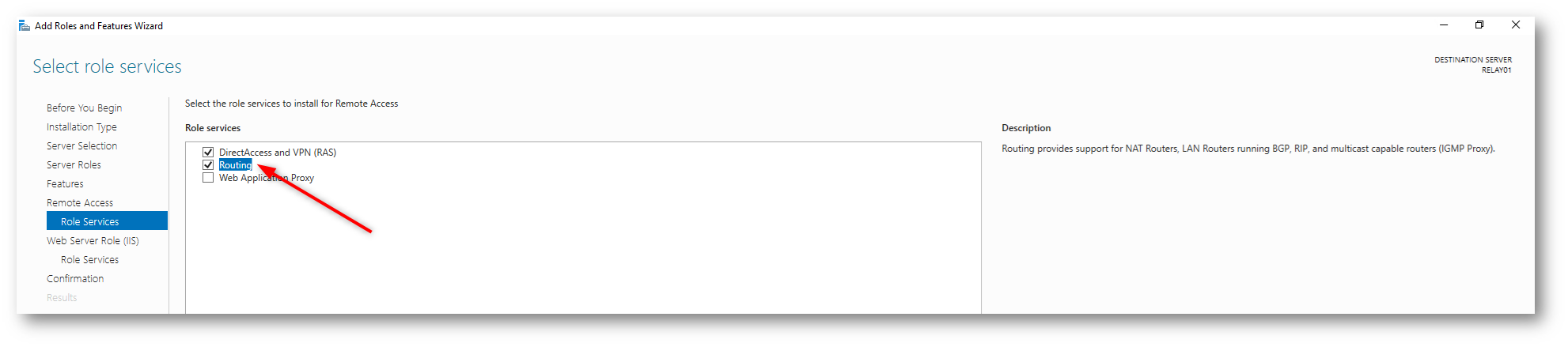 3. Selezionate il ruolo Remote Access e, all’interno, la funzionalità Routing (Routing and Remote Access).