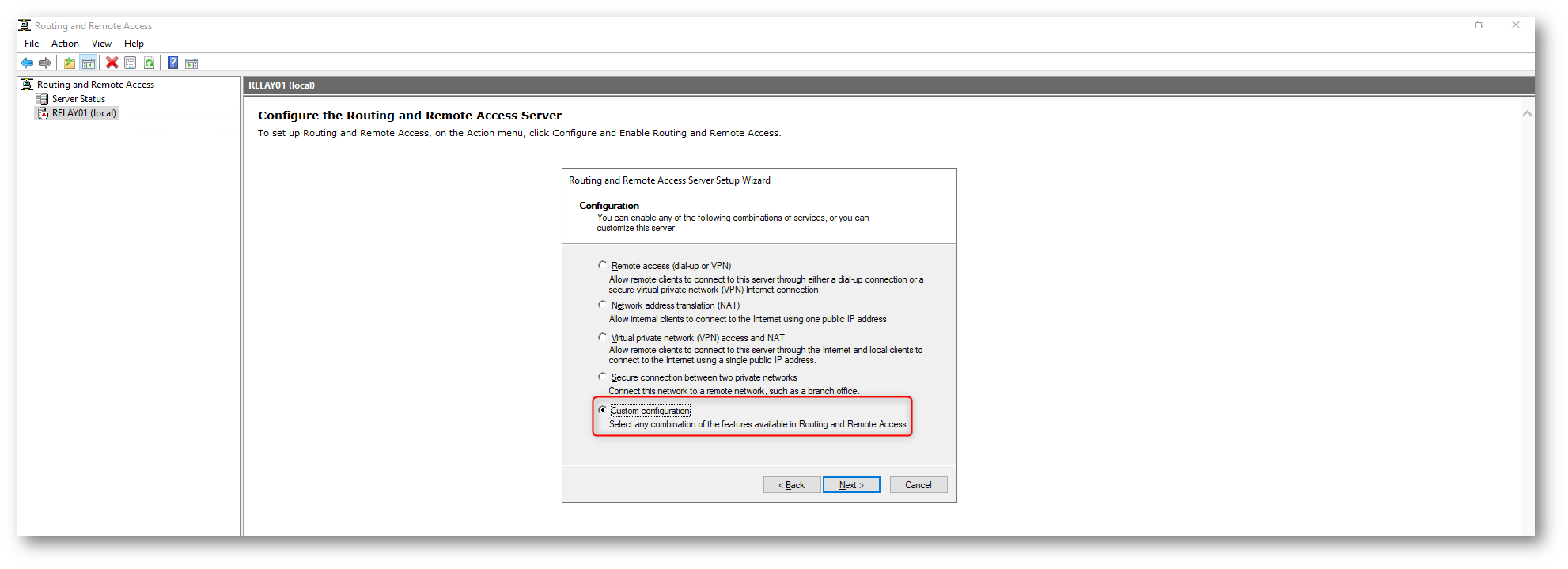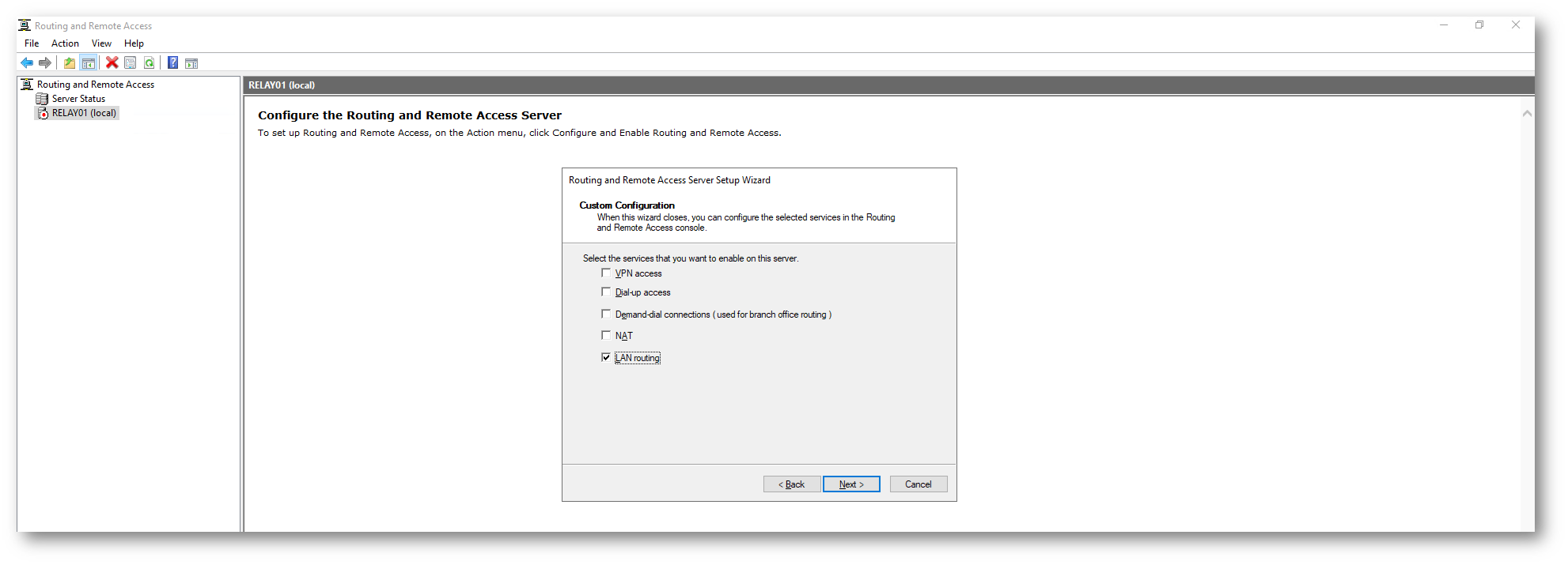 Durante la configurazione, scegliete l’opzione Custom Configuration e abilitate LAN Routing, quindi completate la procedura e avviate il servizio.
