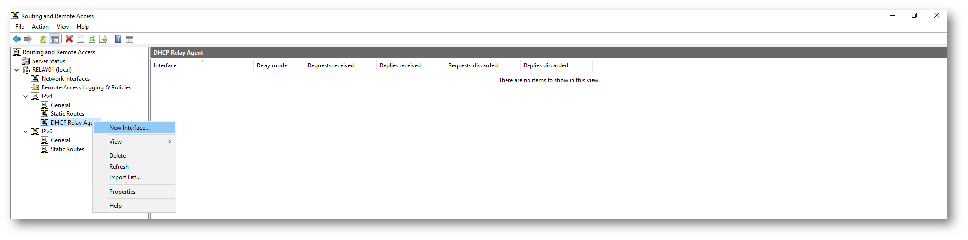 Selezionate DHCP Relay Agent e fate clic con il tasto destro su DHCP Relay Agent e scegliete Properties.