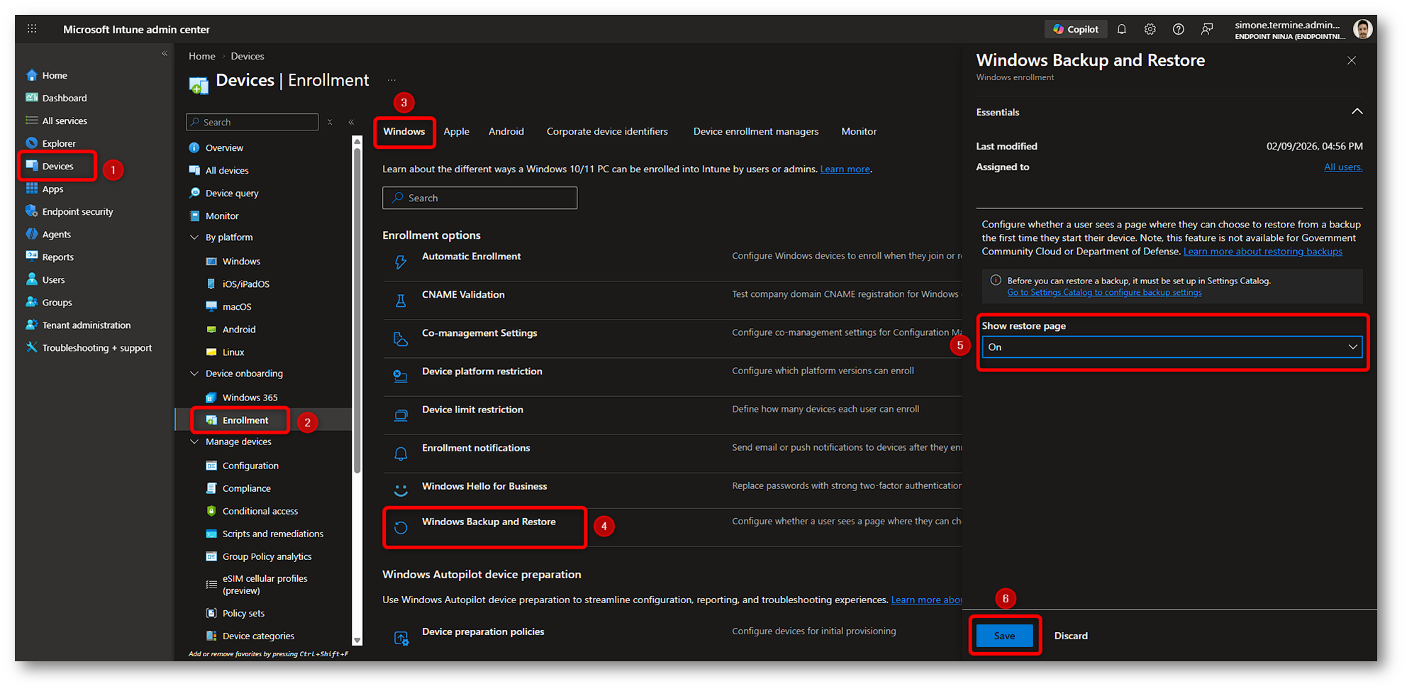 - Come abilitare Windows Restore post enrollment