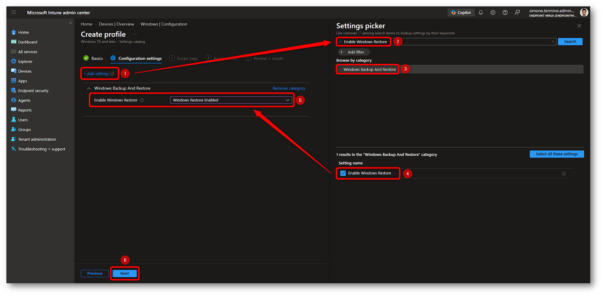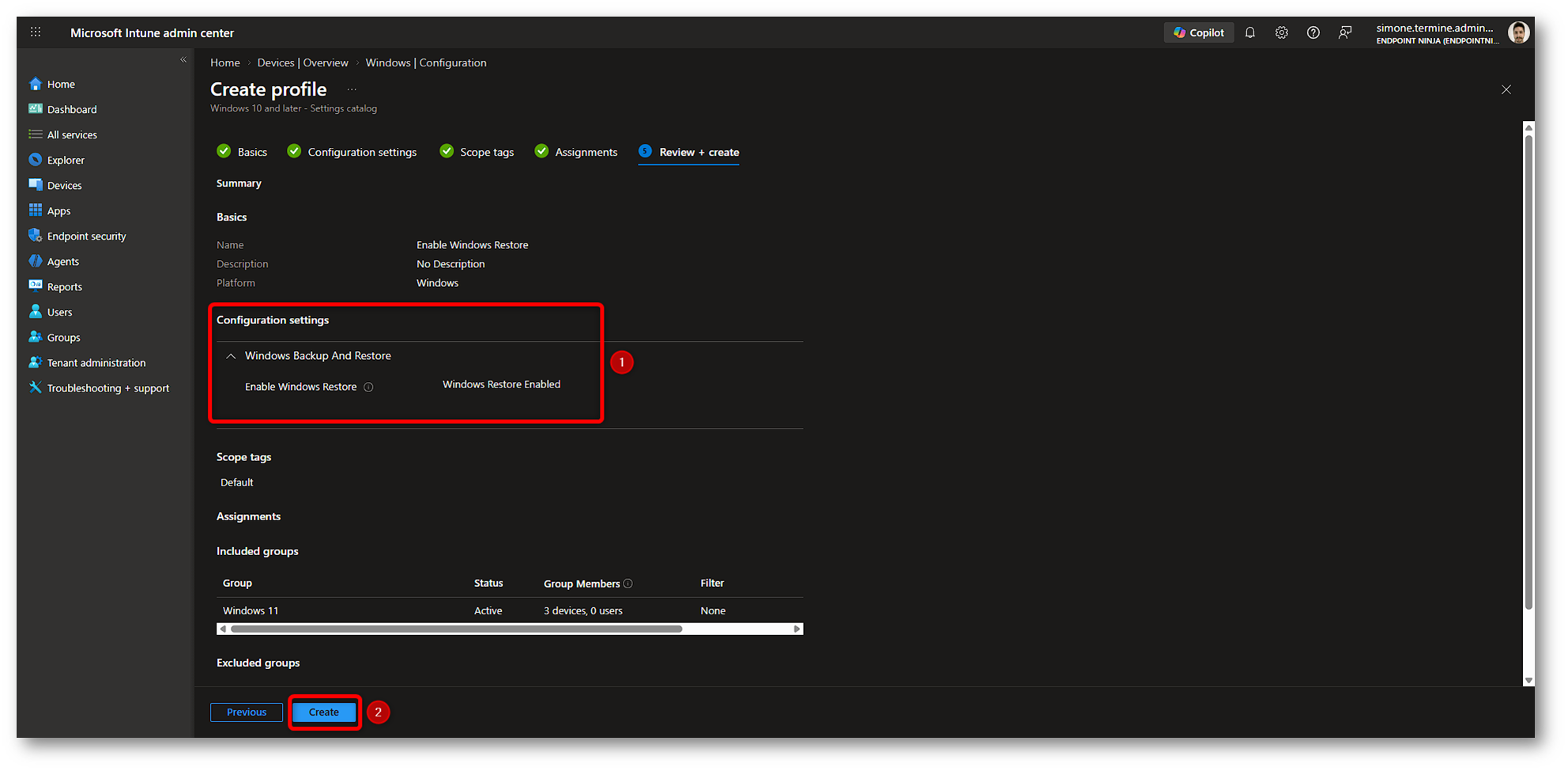 Figura 19: Creazione policy Windows Restore in Microsoft Intune – Parte 6