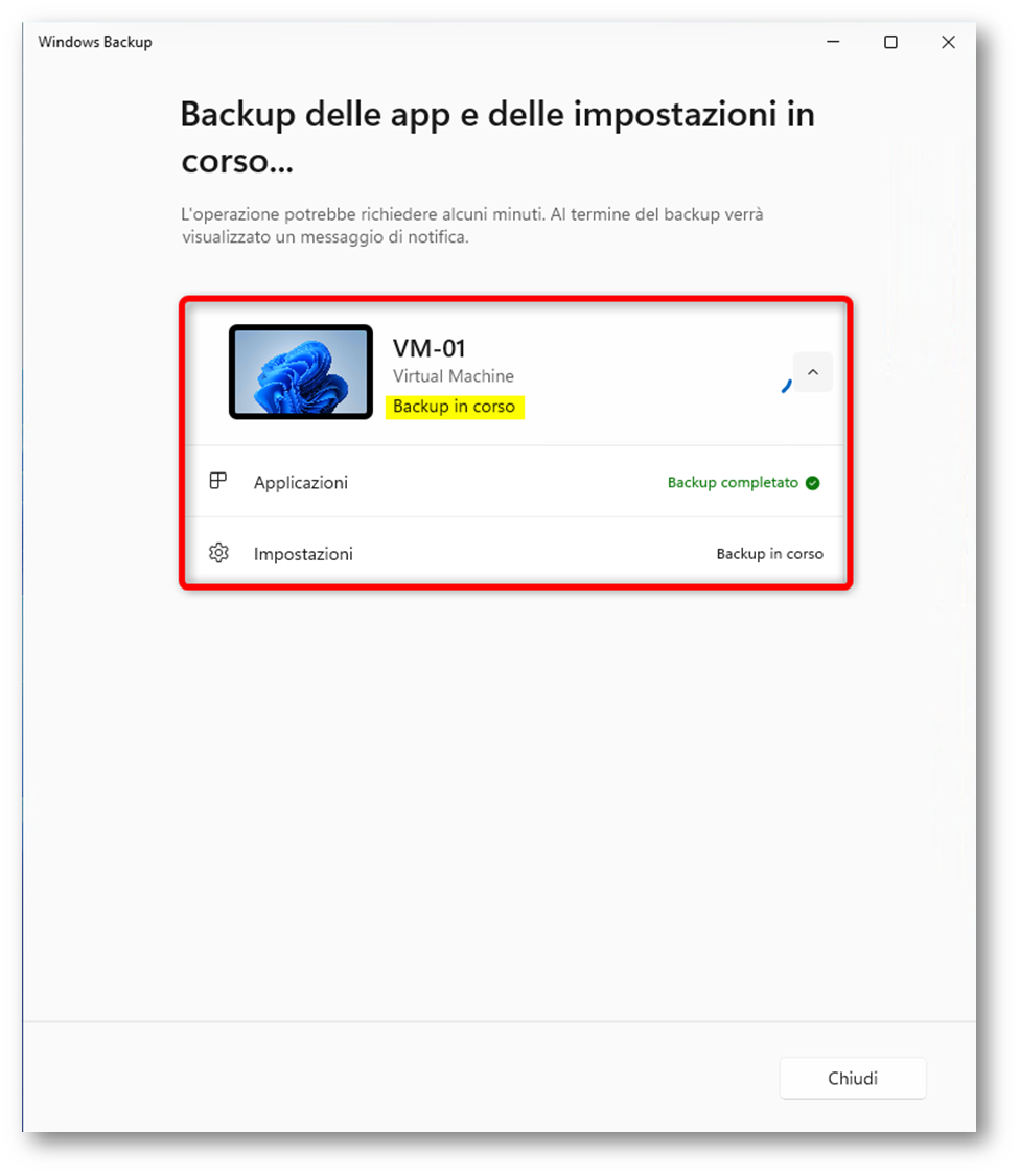 Figura 39: App Windows Backup – Backup in corso