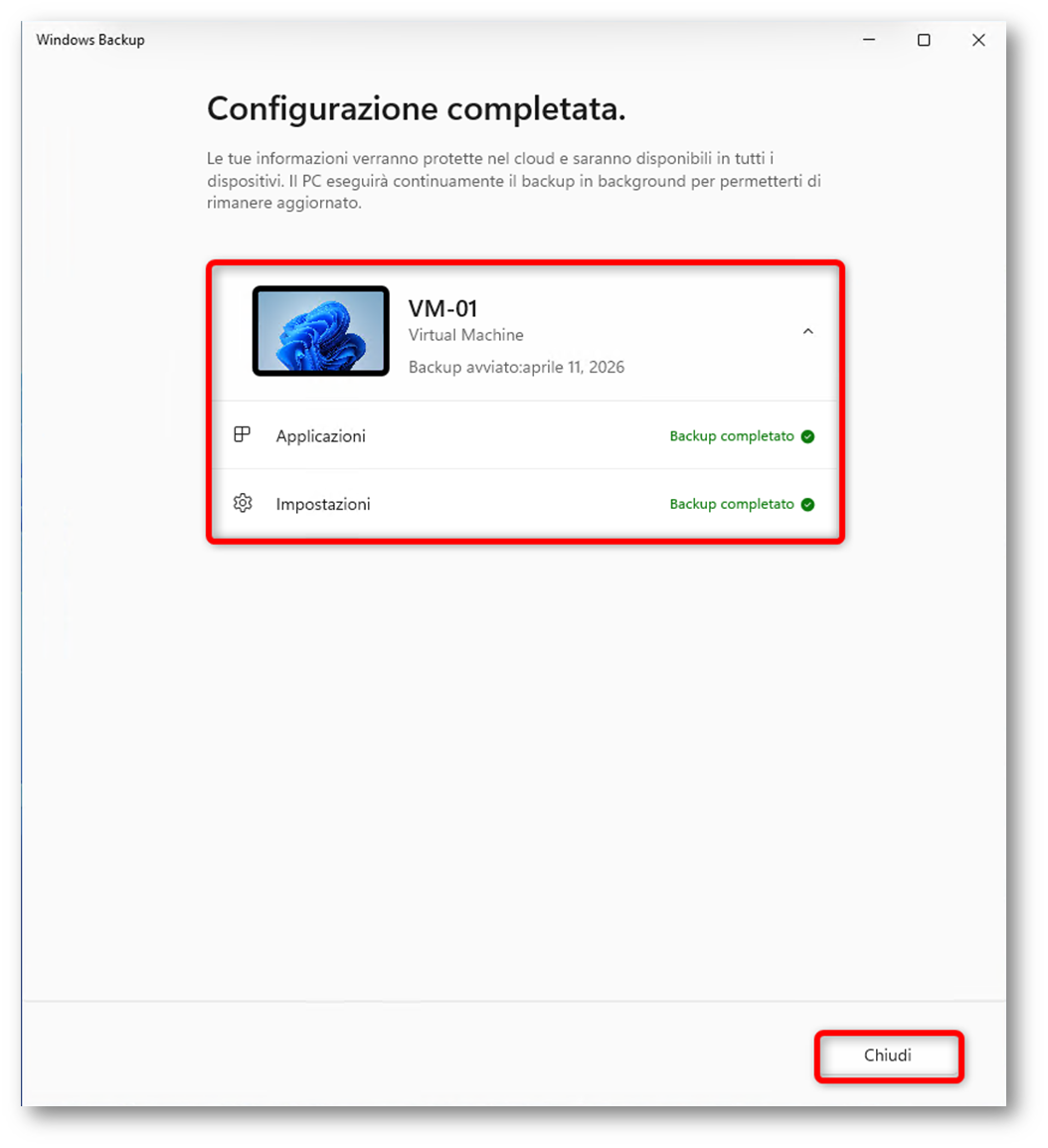 Figura 40: App Windows Backup – Backup completato