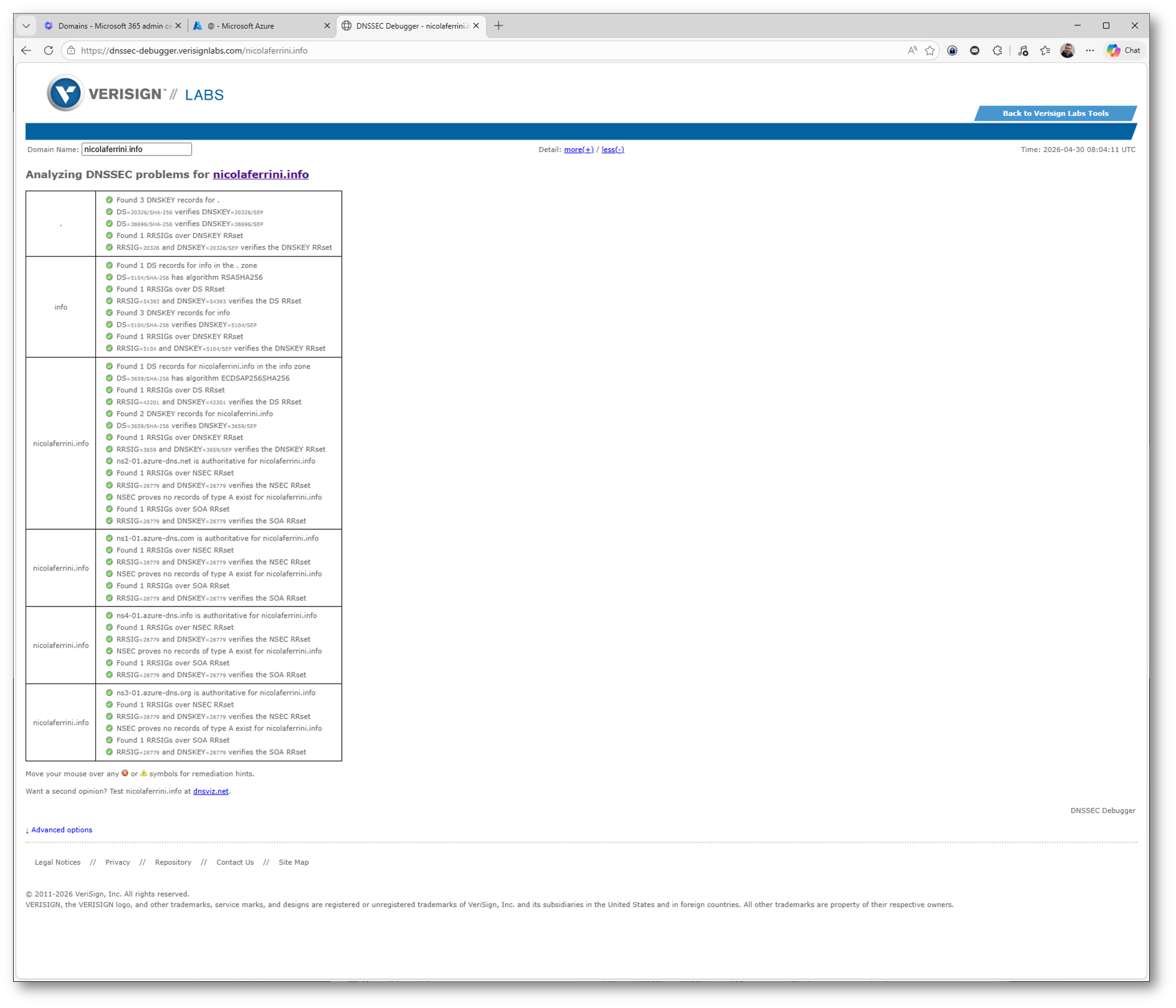 Per impostare SMTP DANE in entrata con DNSSEC in Exchange Online il primo requisito fondamentale è verificare che il dominio sia correttamente firmato.