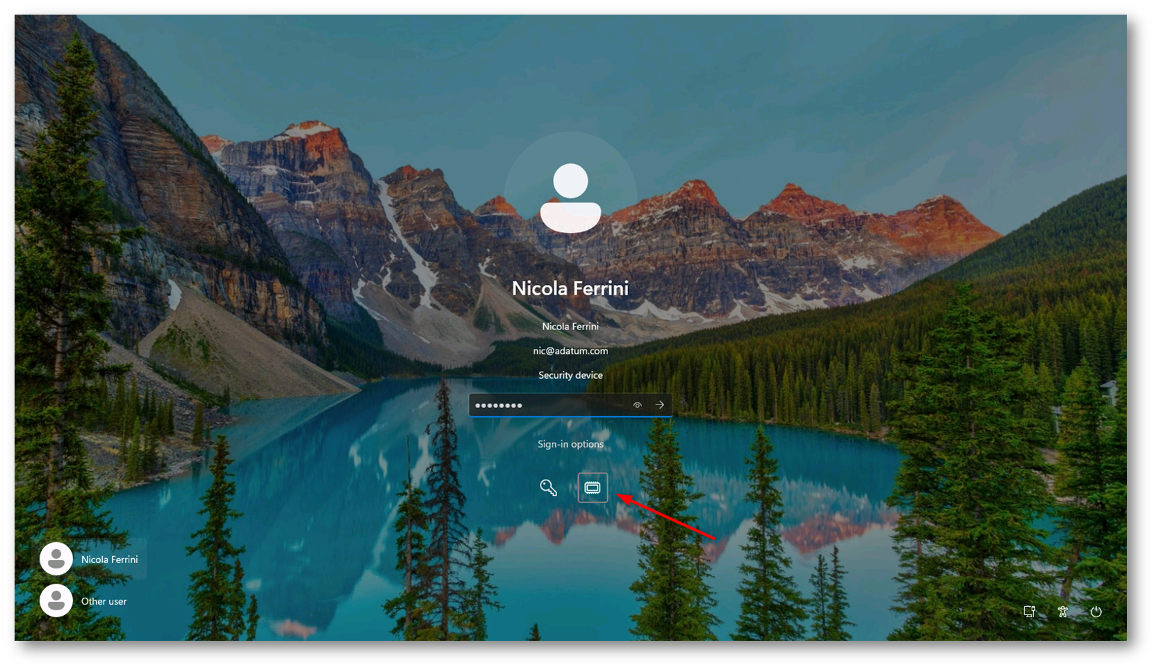 Nella schermata di accesso selezionate Sign-in options e scegliete l’icona della smart card, che rappresenta il dispositivo di sicurezza associato alla Virtual Smart Card. Questa opzione diventa disponibile solo dopo che il certificato è stato correttamente installato.