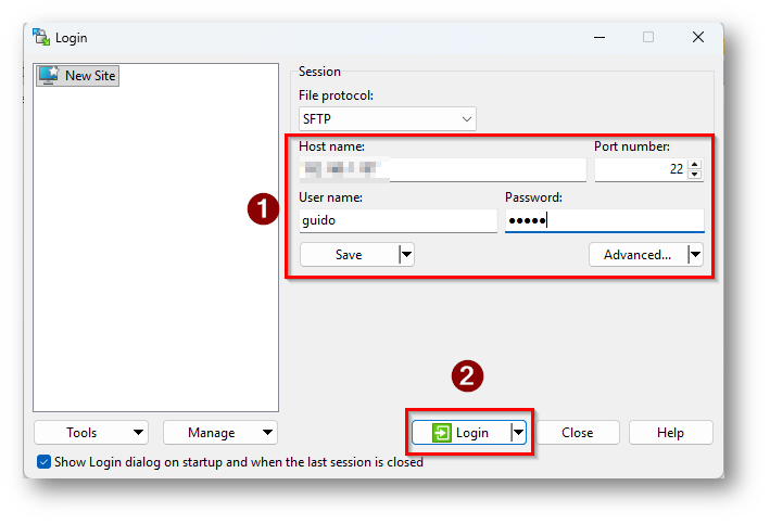 Figura 11: Collegamento alla macchina Linux con WinScp