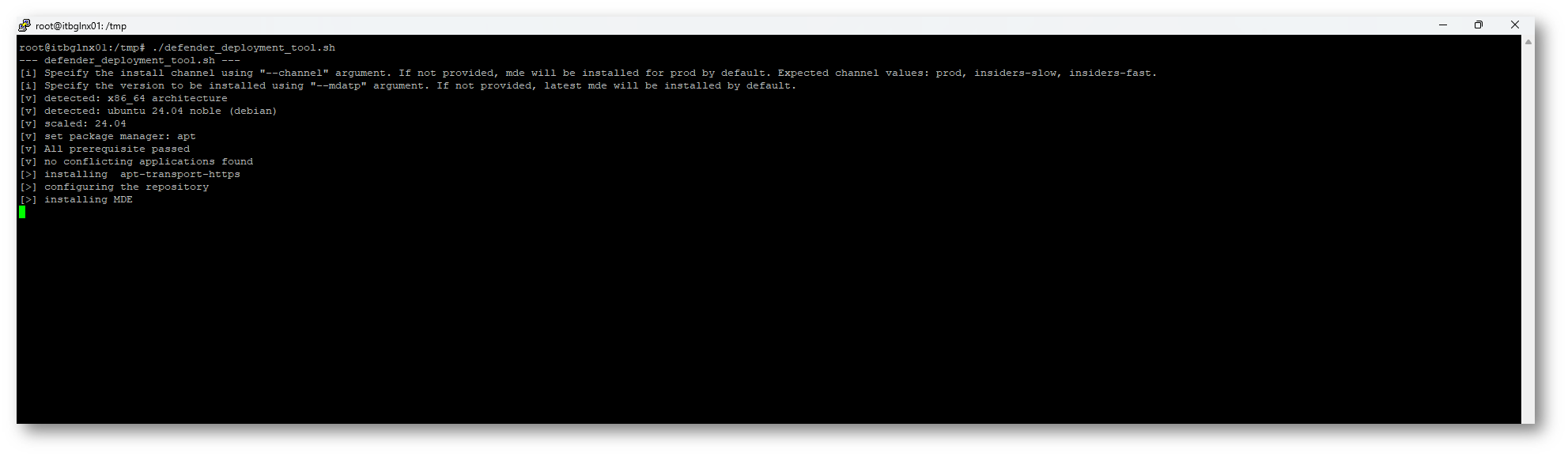 Eseguire la distribuzione dal canale insider-slow sudo ./defender_deployment_tool.sh –channel insiders-slow