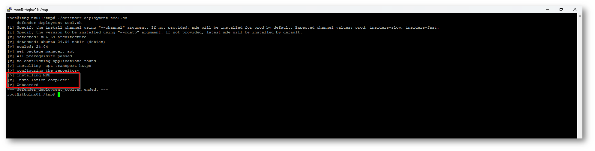 Eseguire l’onboarding solo se Defender è già installato sudo ./defender_deployment_tool.sh –only-onboard