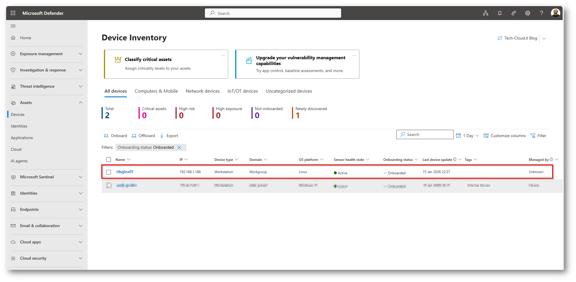Figura 18: Dispositivo correttamente presente all’interno del portale di Microsoft Defender for Endpoint
