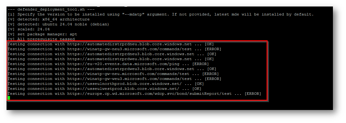 Eseguire il test di connettività sudo ./defender_deployment_tool.sh –connectivity-test