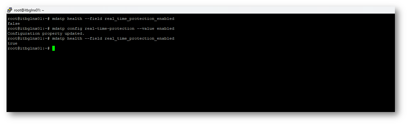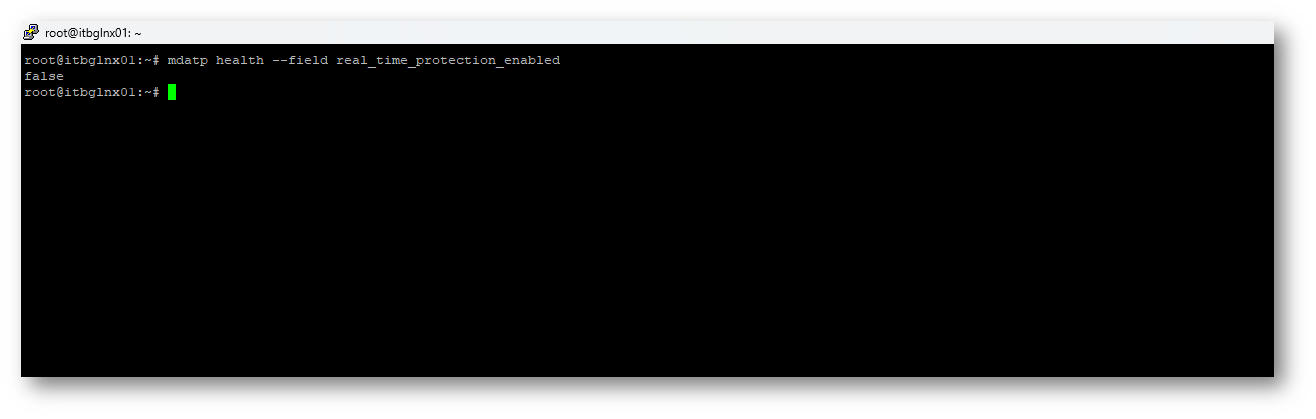 Assicurarsi che la protezione in tempo reale sia correttamente attiva “mdatp health –field real_time_protection_enabled”
