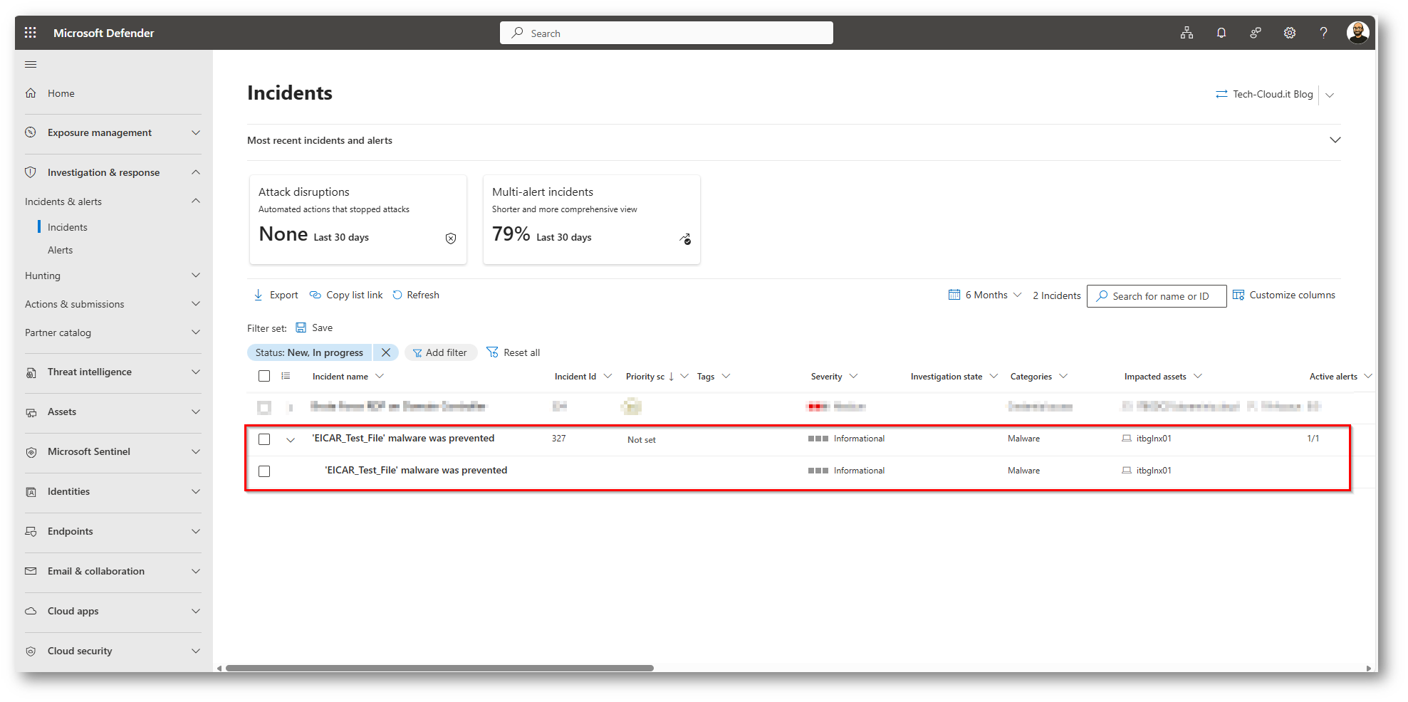 Figura 24: Alert correttamente presenti al portale Microsoft Defender