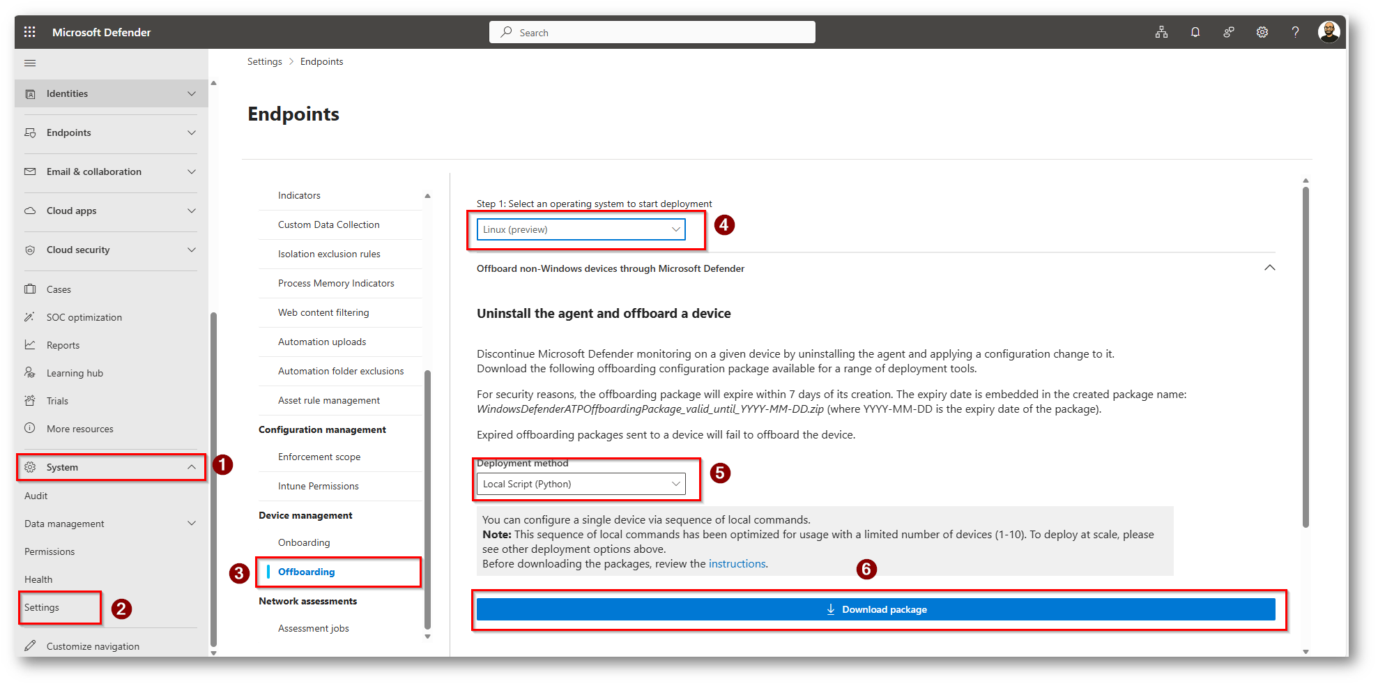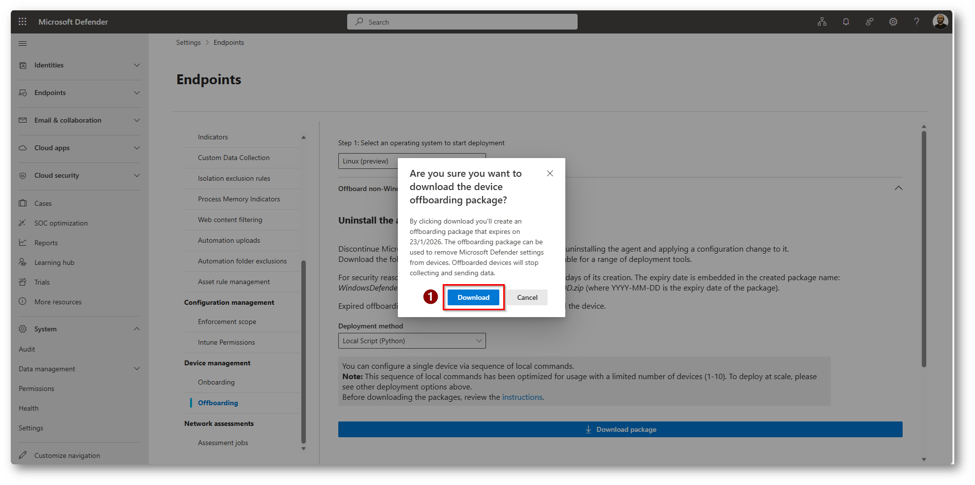 Per procedere all’offboarding è necessario eseguire il Download del file di offboarding dal portale di Microsoft Defender
