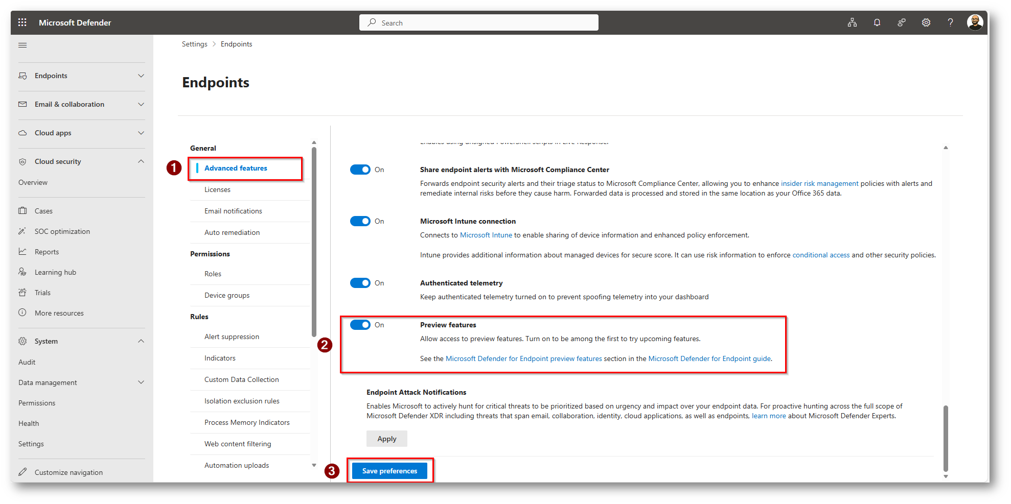 Essendo una funzionalità in Preview il primo passaggio è quello di abilitare questa funzionalità recandosi all’interno del portale Microsoft Defender