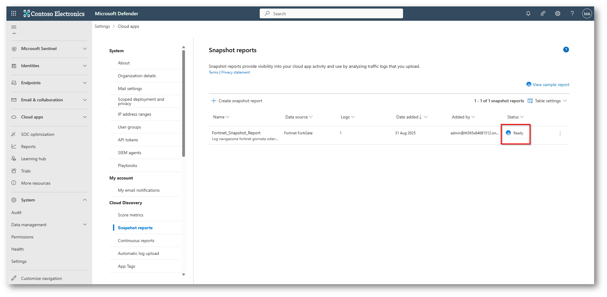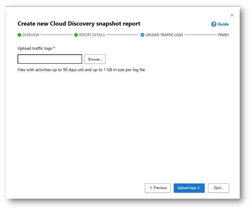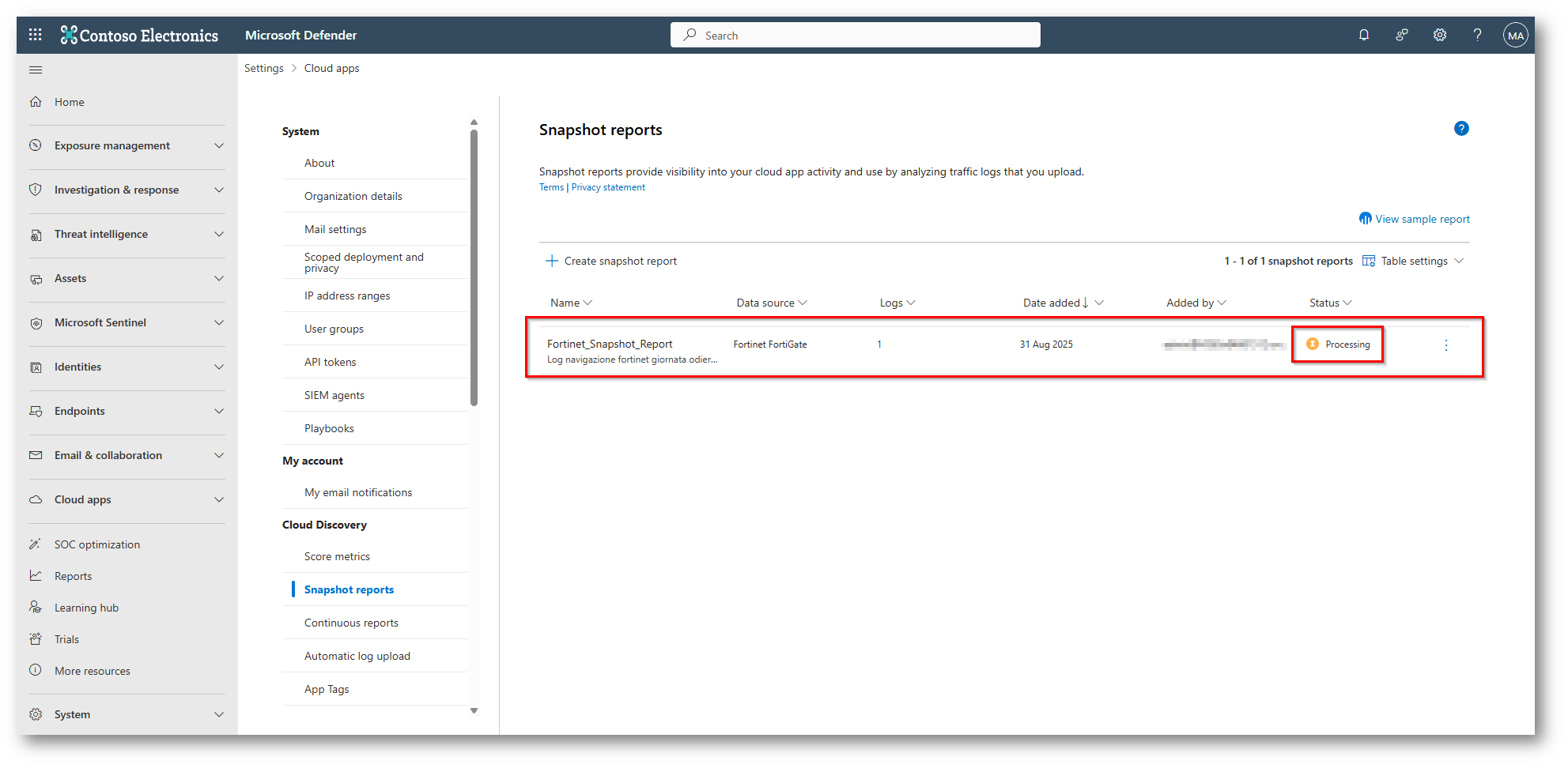 Vorrei quindi darvi evidenza di come poter implementare una “fotografia” attraverso Defender for Cloud Apps, eseguendo un Upload manuale dei log di navigazione del firewall.