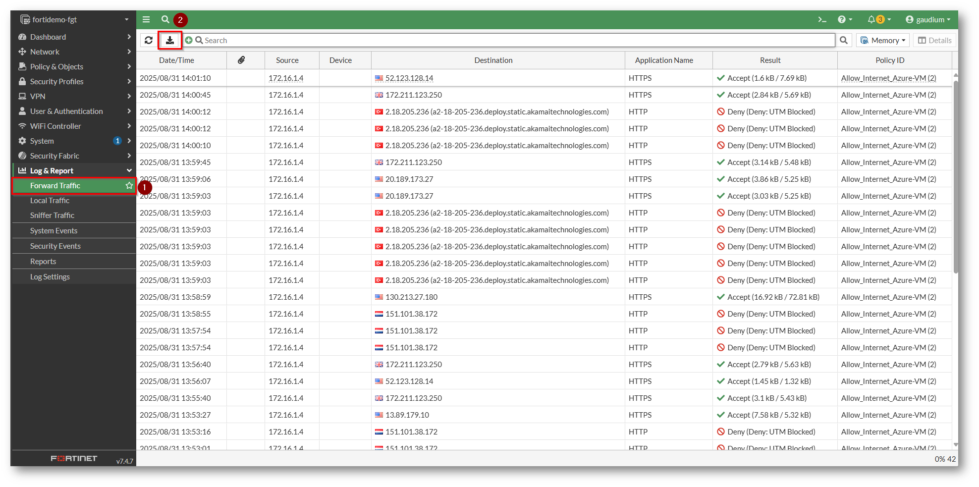 Figura 14: Download del Forward Traffic direttamente dall’interfaccia di FortiGate