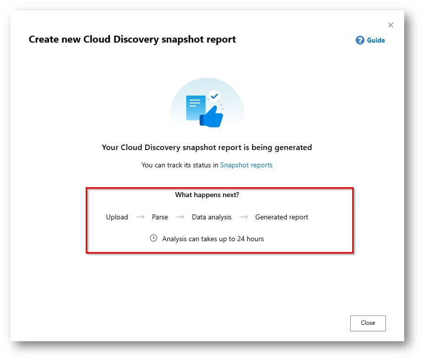 Figura 18: Il sistema ci avvisa che verrà eseguito il parsing dei log, un’analisi dei dati e verrà generato il report, tutta l’attività potrebbe richiedere 24 ore