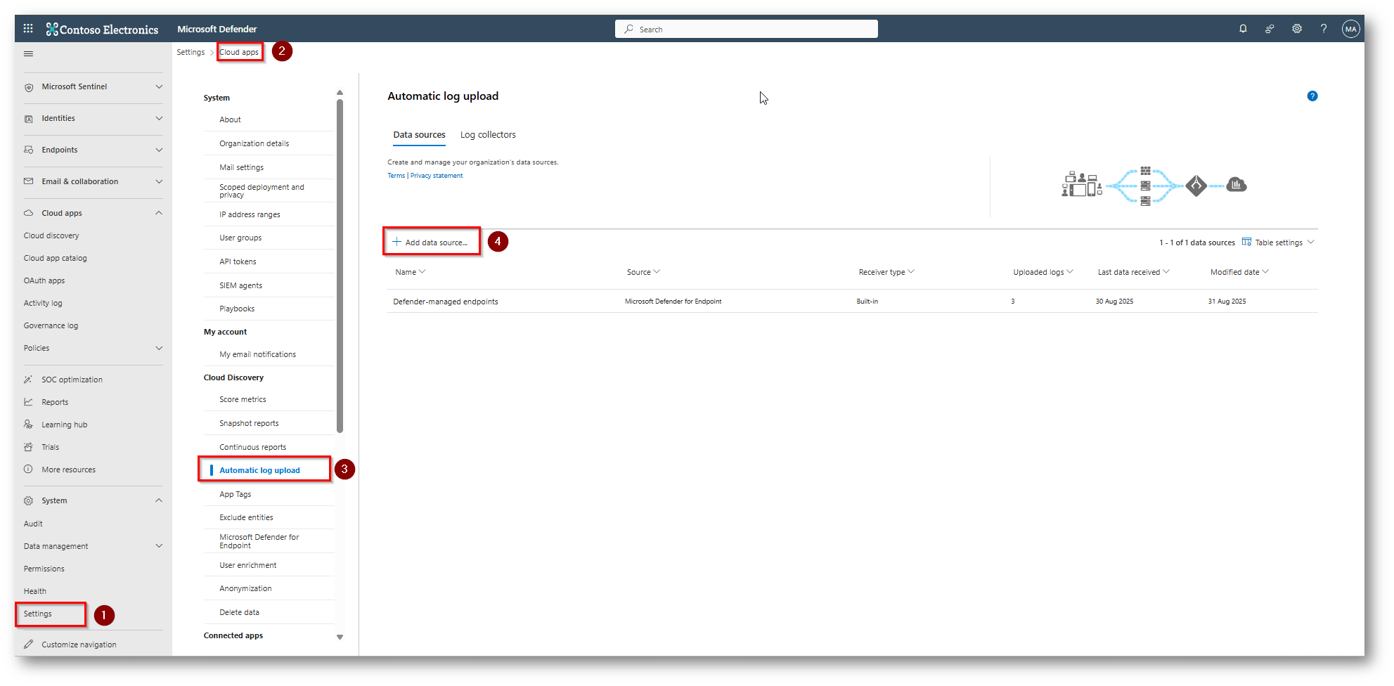 Figura 22: Aggiunta di una Data Source all’interno del portale di Microsoft Defender XDR