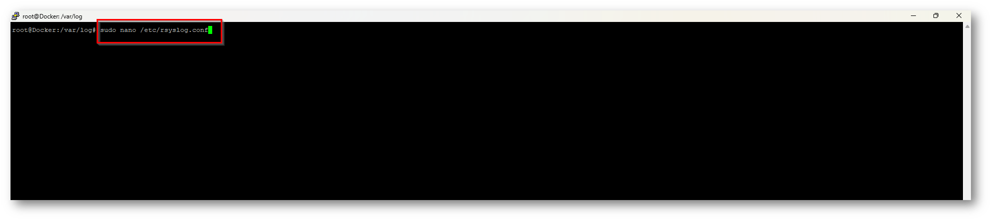 Figura 42: Comando che permette di aprire in modalità Edit il file di configurazione di Syslog