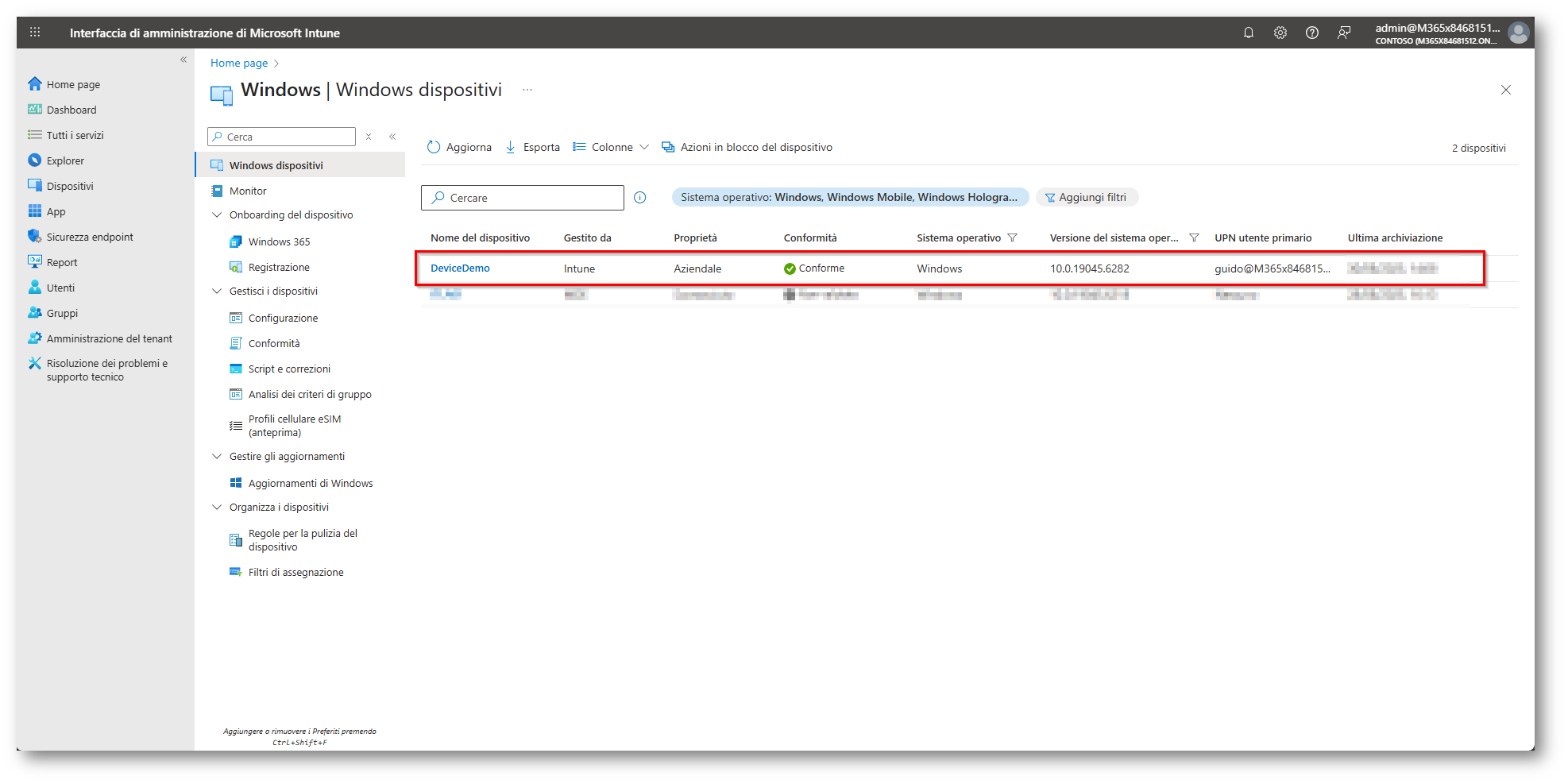 Figura 5: Device Demo che naviga in Internet attraverso il firewall che risulta gestito da Microsoft Intune