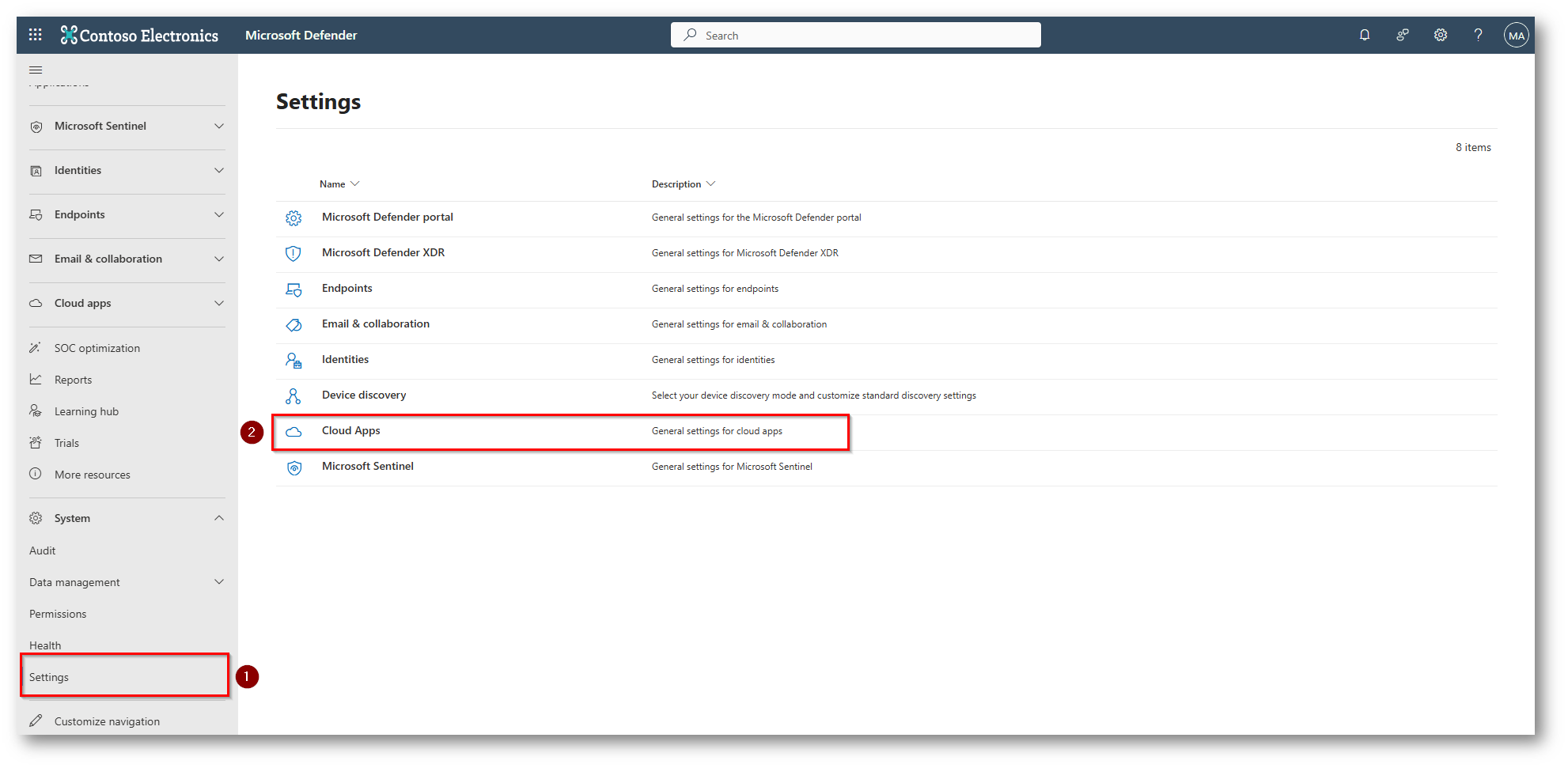 Figura 8: Entriamo nelle impostazioni di Microsoft Defender for Cloud Apps