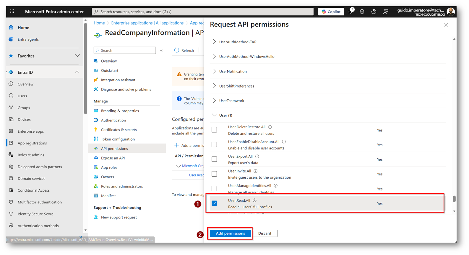 Figura 10: Impostiamo il permesso “User.Read.All”