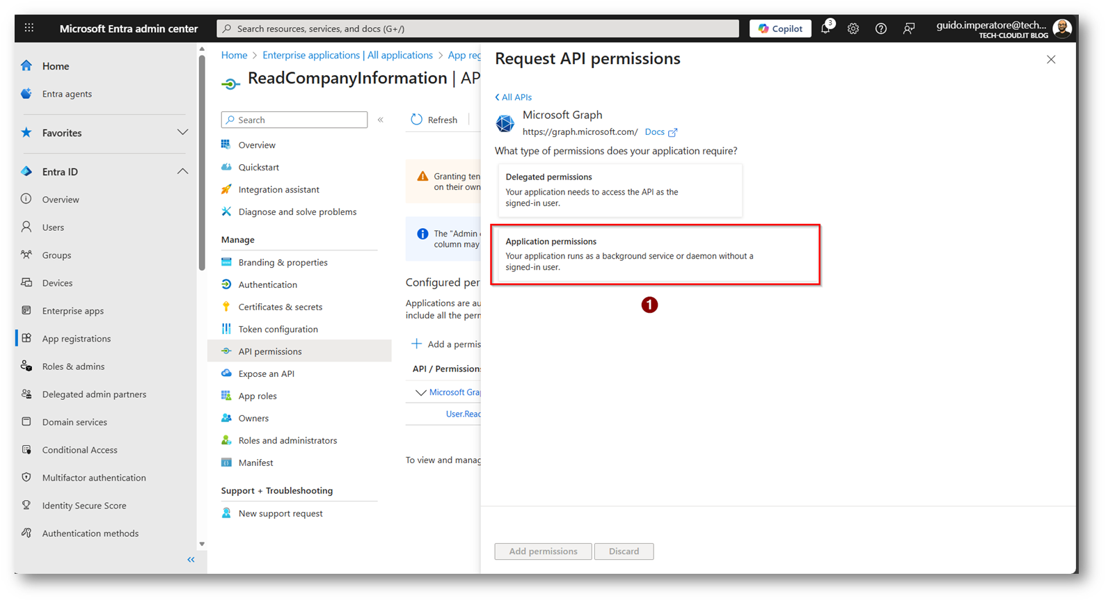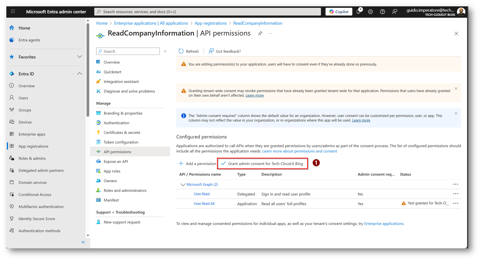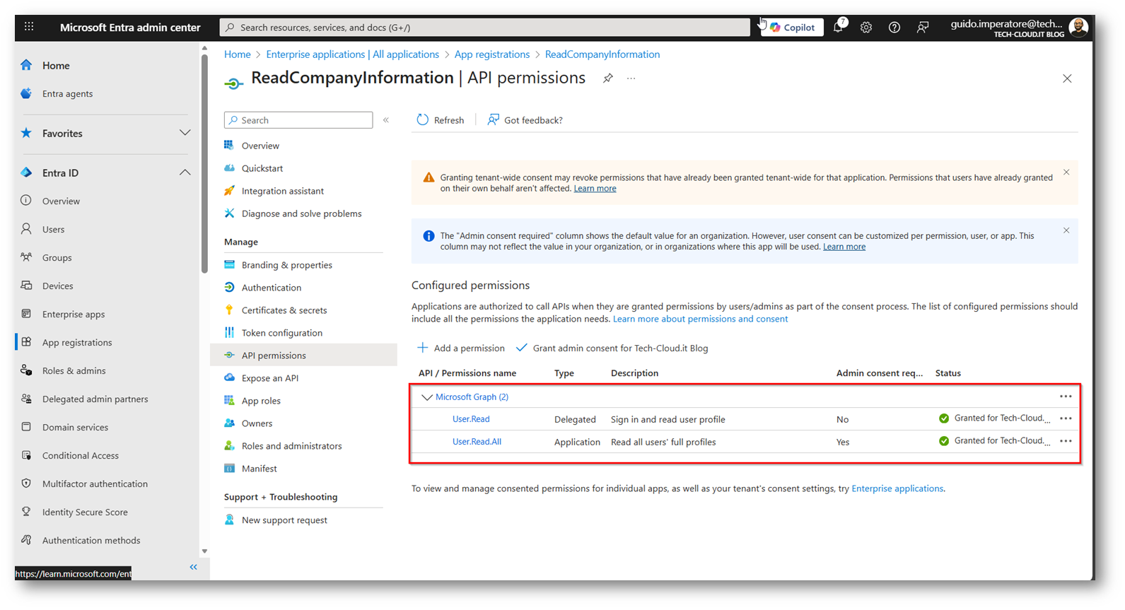 - Creazione App Microsoft Entra per leggere il parametro “Company Name” dell’utente