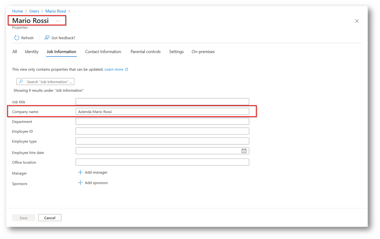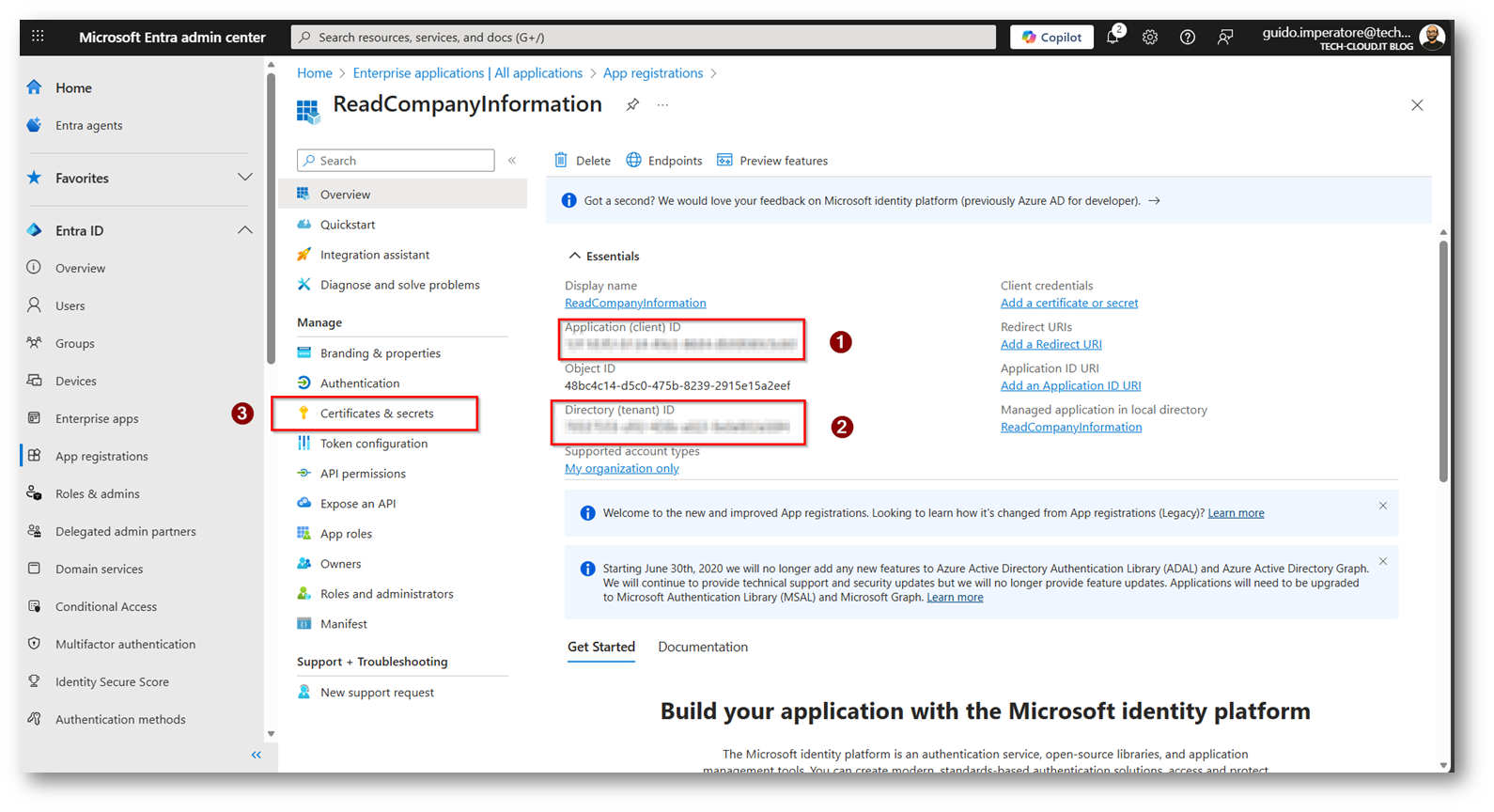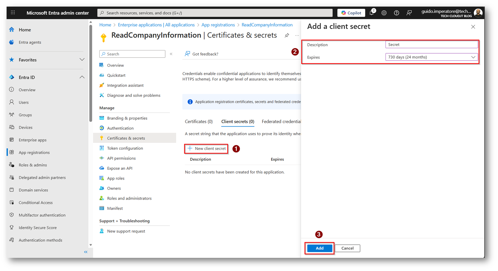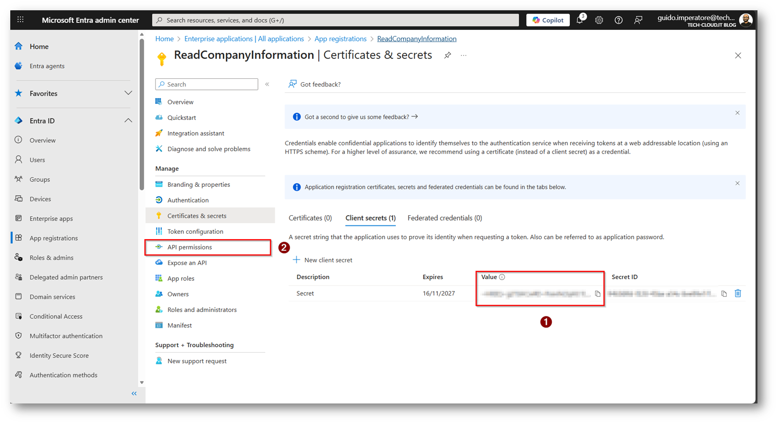 - Creazione App Microsoft Entra per leggere il parametro “Company Name” dell’utente
