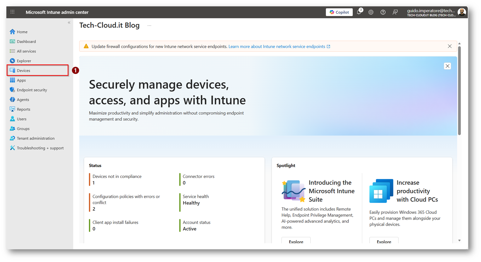Figura 16: Portale di Microsoft Intune sezione device