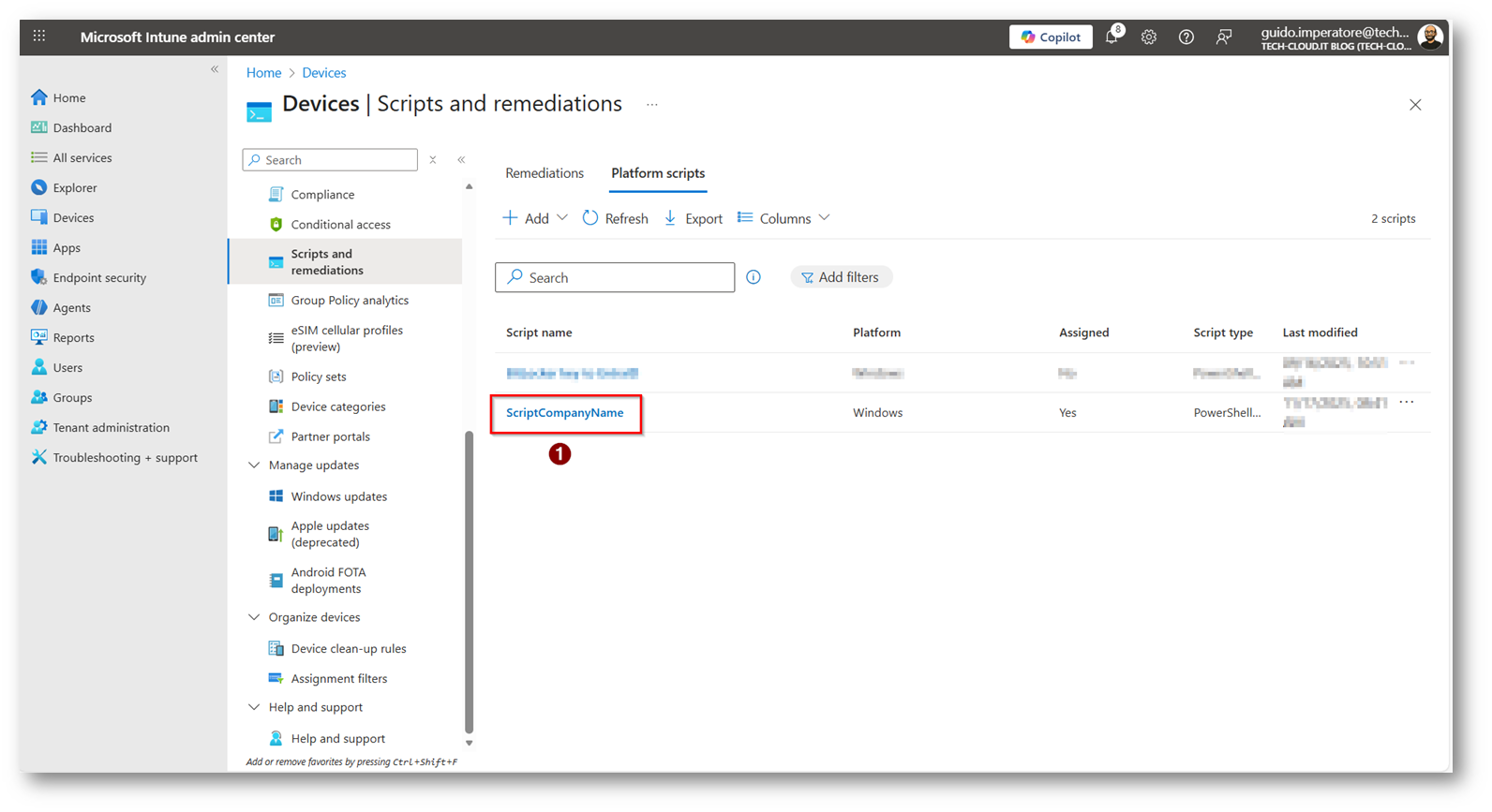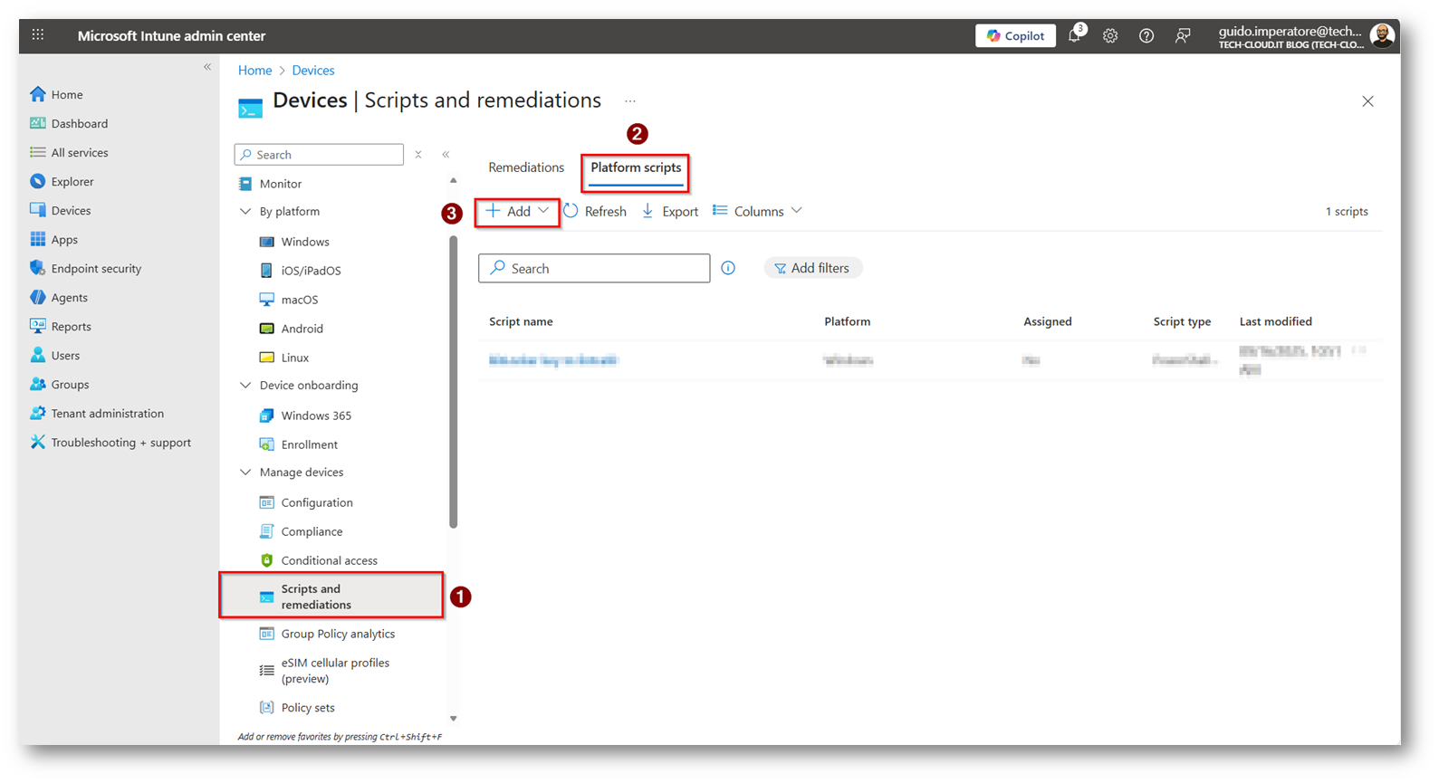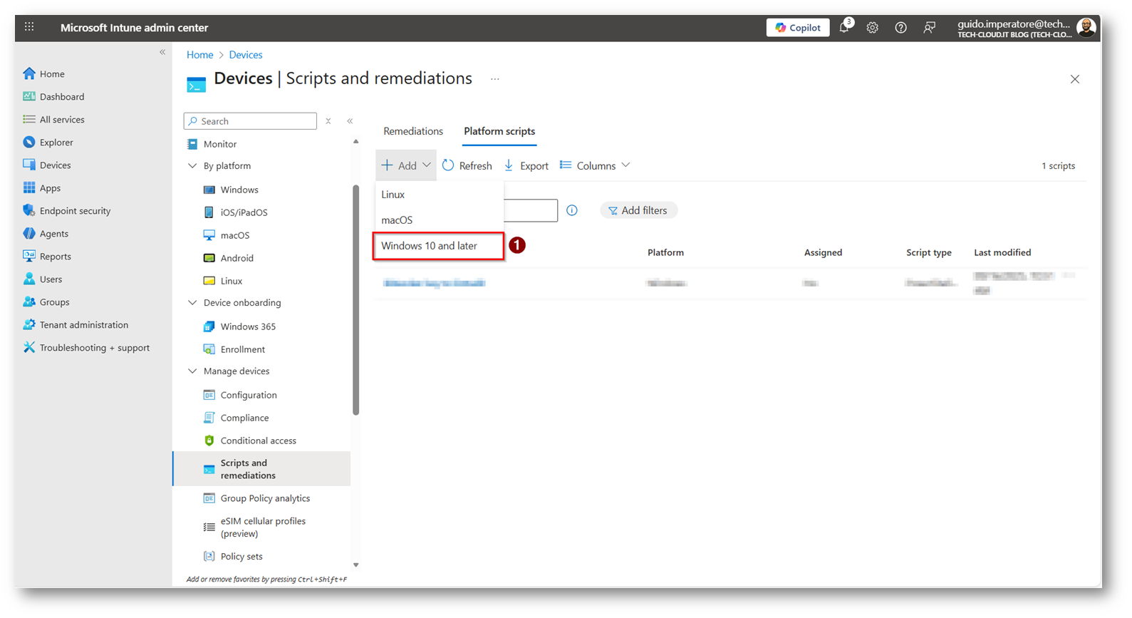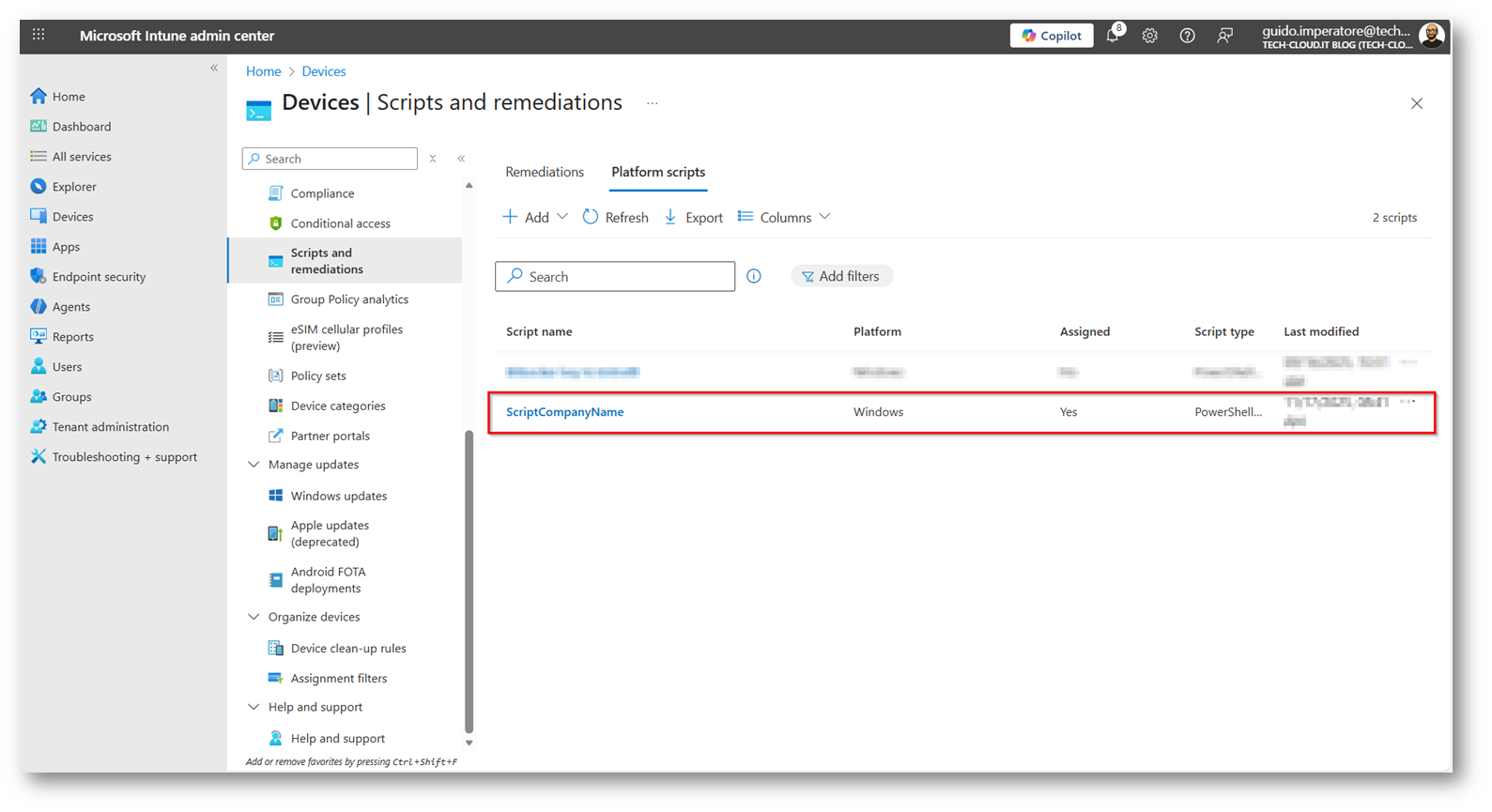 Figura 17: Sezione “Platform Scripts” di Microsoft Intune