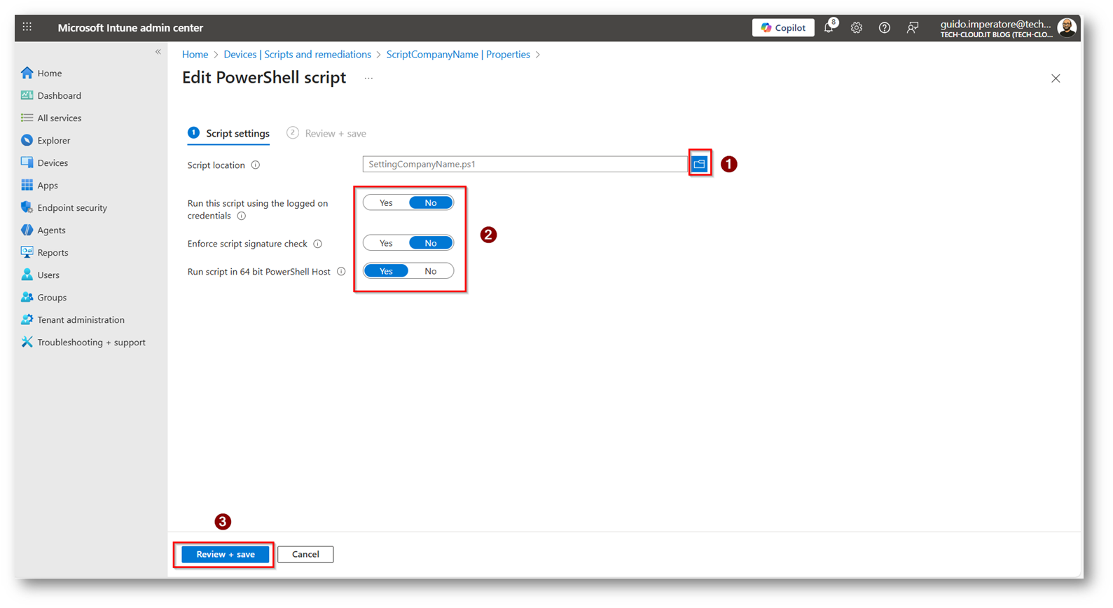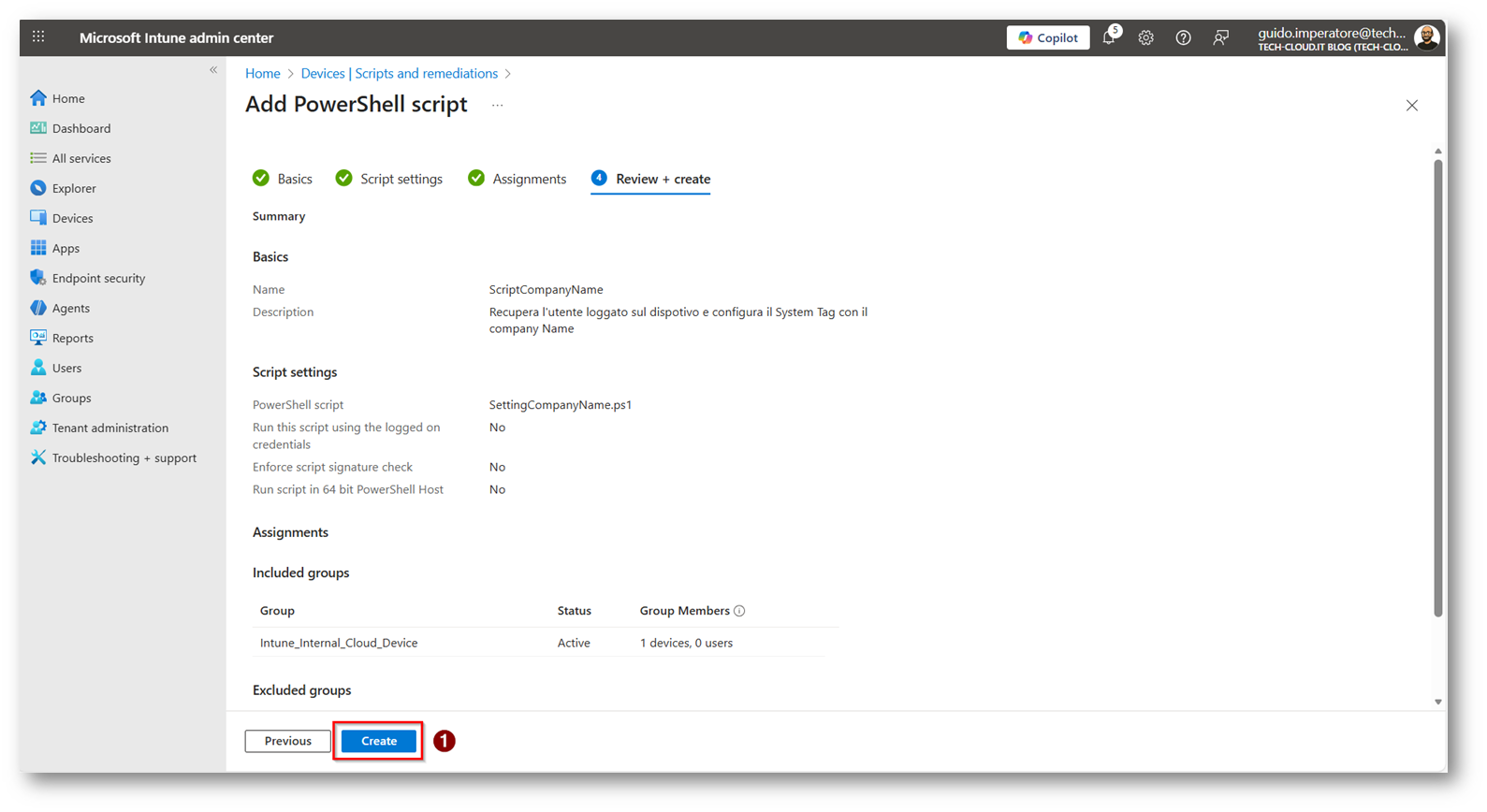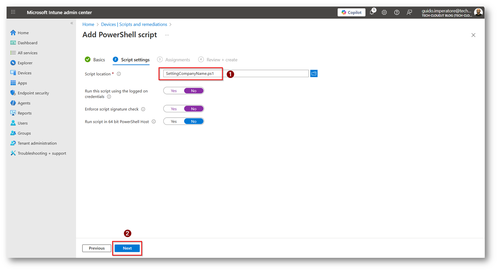 Ora possiamo procedere a caricare lo script all’interno del portale di Microsoft Intune