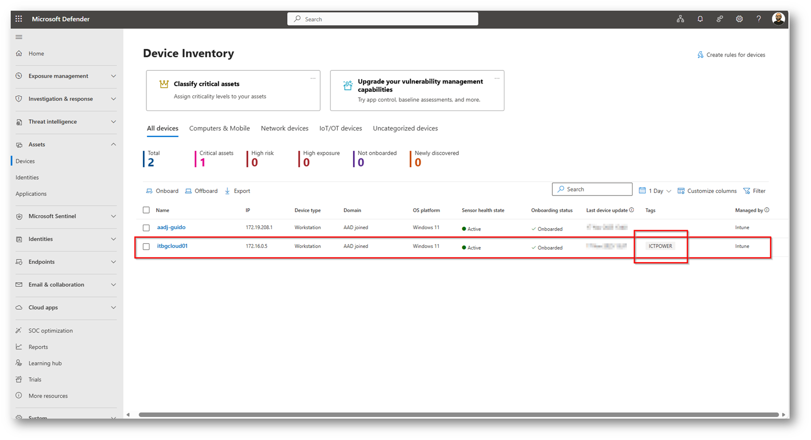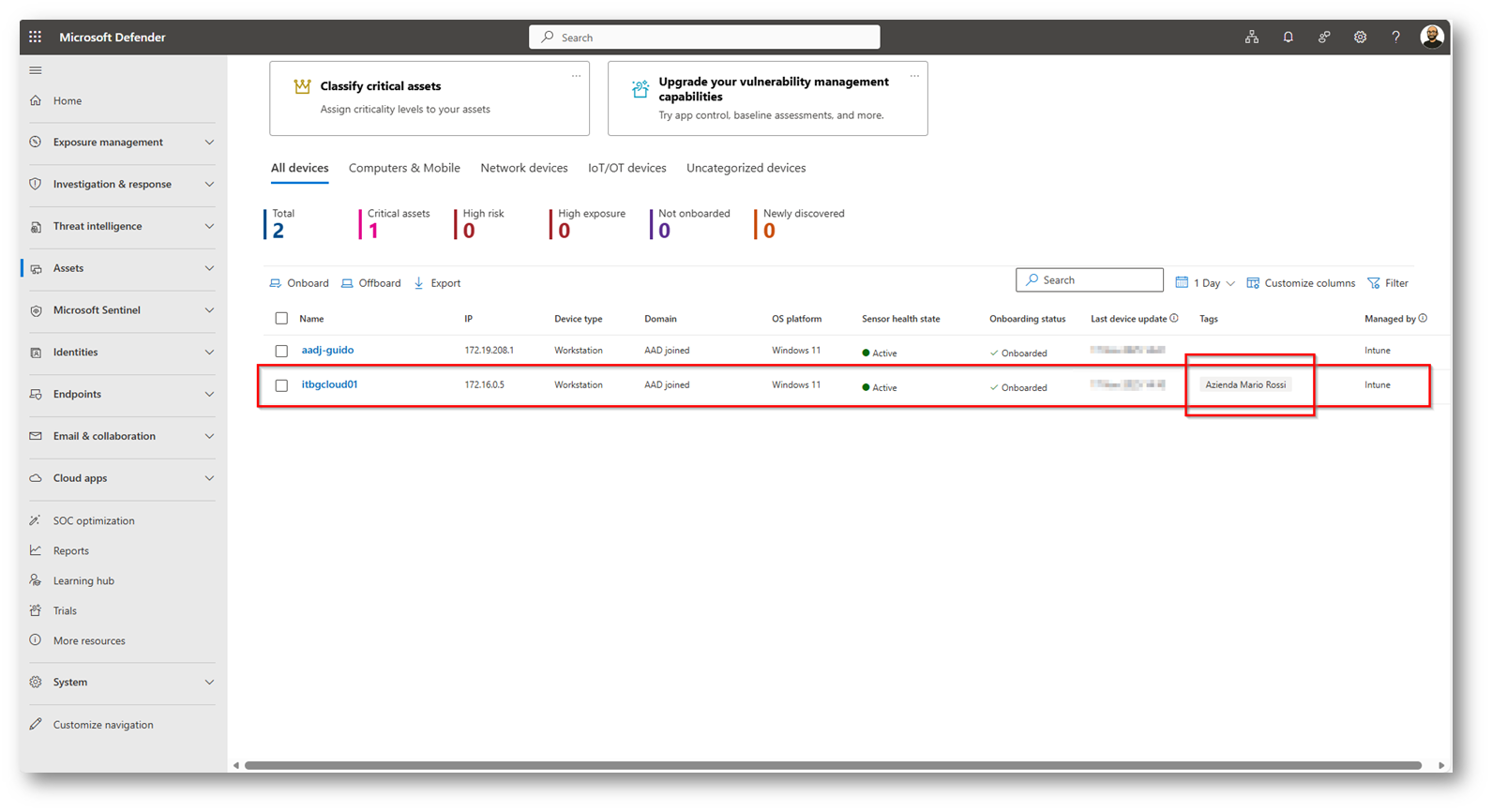 Figura 30: Device con il tag inserito dallo script correttamente presente all’interno del portale Microsoft Defender XDR