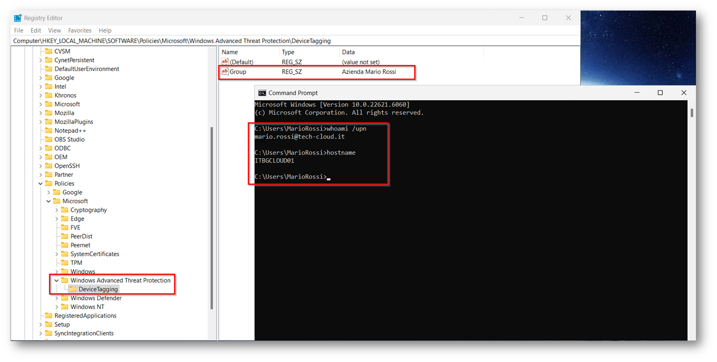 Ora vediamo se si logga sullo stesso Endpoint un altro utente cosa succede, lo script cambierà il tag, ho voluto così simulare il cambio di azienda del personale interno all’organizzazione