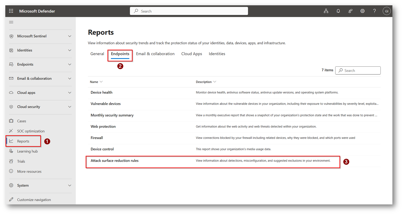 Figura 1: Sezione report di Microsoft Defender XDR