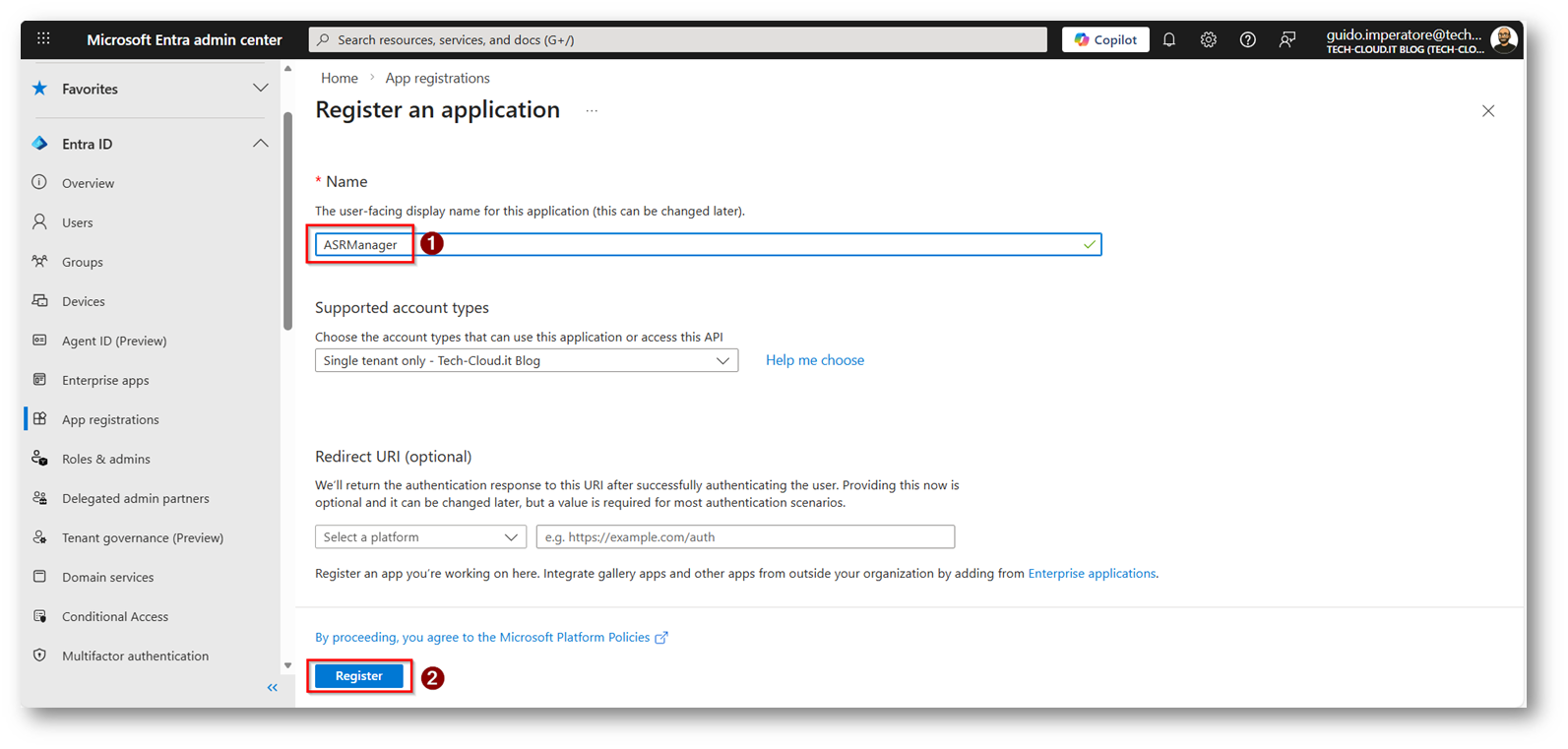 Figura 14: Registrazione di una nuova app di EntraID