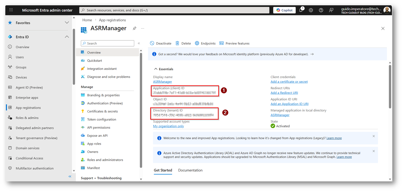 Figura 16: Copiatevi ora “Application (client) ID o Directory (tenant) ID”