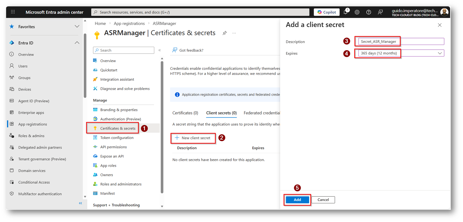Figura 17: Ora creiamo il Secret, dando un nome parlante ed una durata consona, ricordatevi che allo scadere per far funzionare l’applicazione sarà da rinnovare