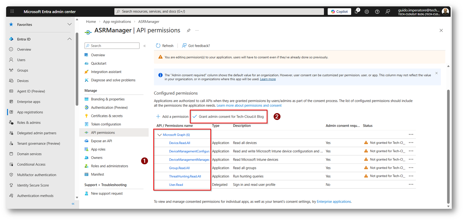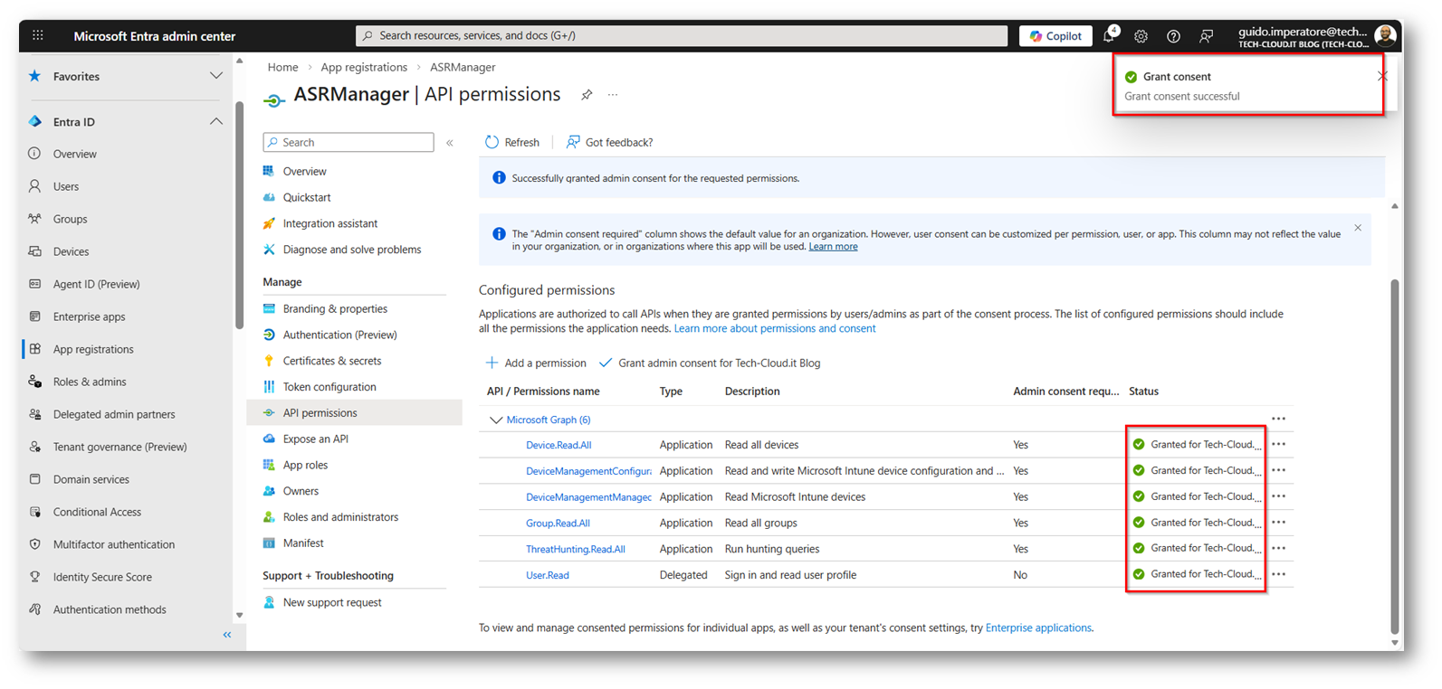 Come prima cosa bisogna creare una App in EntraID con i permessi corretti è importante dire che è necessario utilizzare PowerShell 7.X