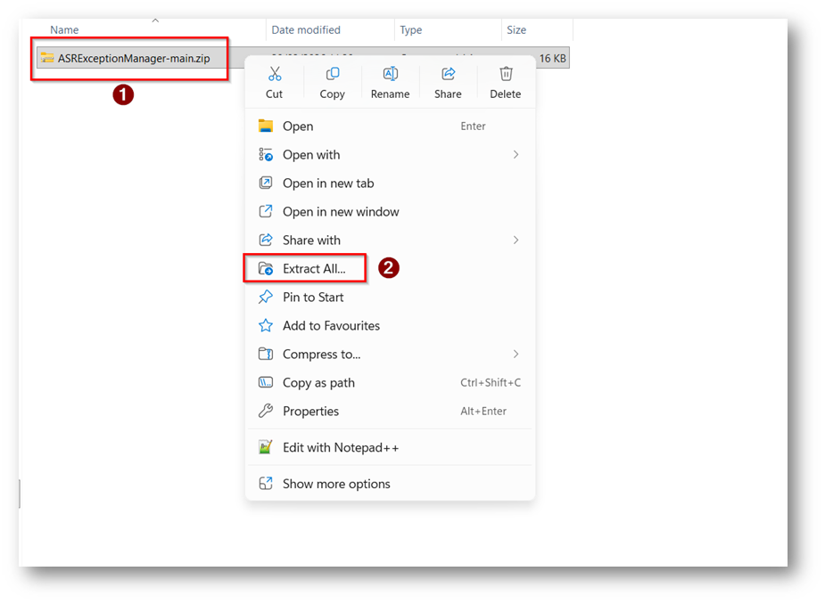 Figura 26: Script presente nella cartella Download, procederò a copiarlo ed estrarlo in un path locale nel mio caso “C:\service\ASRExceptionManager”