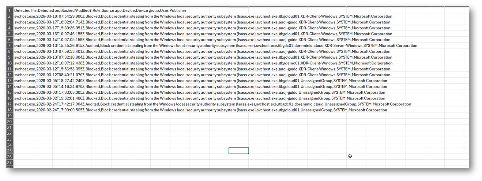Prima avevamo verificato che la regola bloccava “svchost.exe” in questa regola ASR “AsrLsassCredentialTheftBlocked”