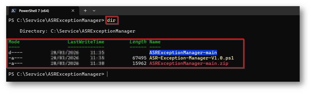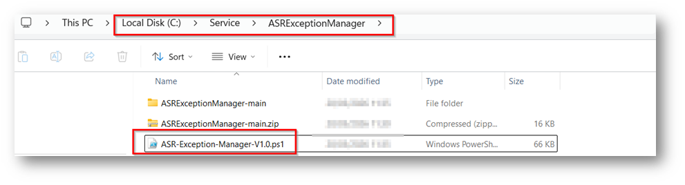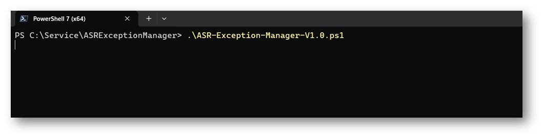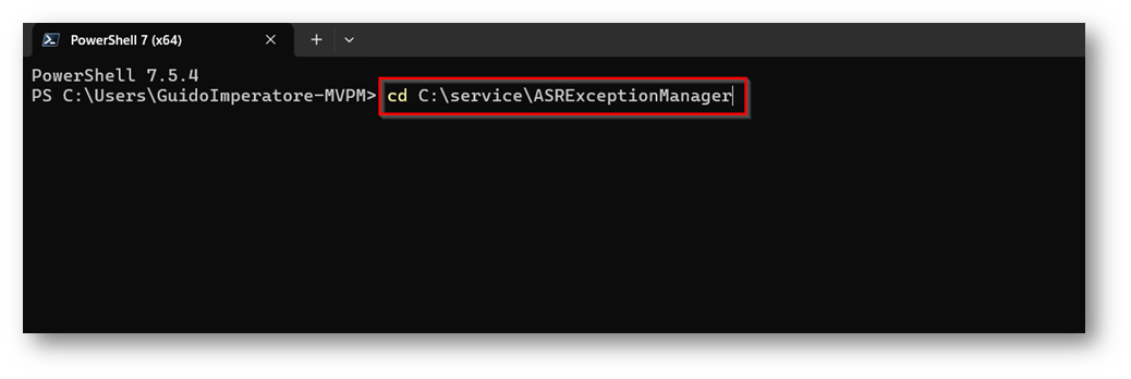Questo è il path in cui risiede lo script nel mio caso “C:\Service\ASRExceptionManager\ASRExceptionManager-main\ASRExceptionManager-main” nel mio caso lo sposto nella cartella padre “C:\Service\ASRExceptionManager”