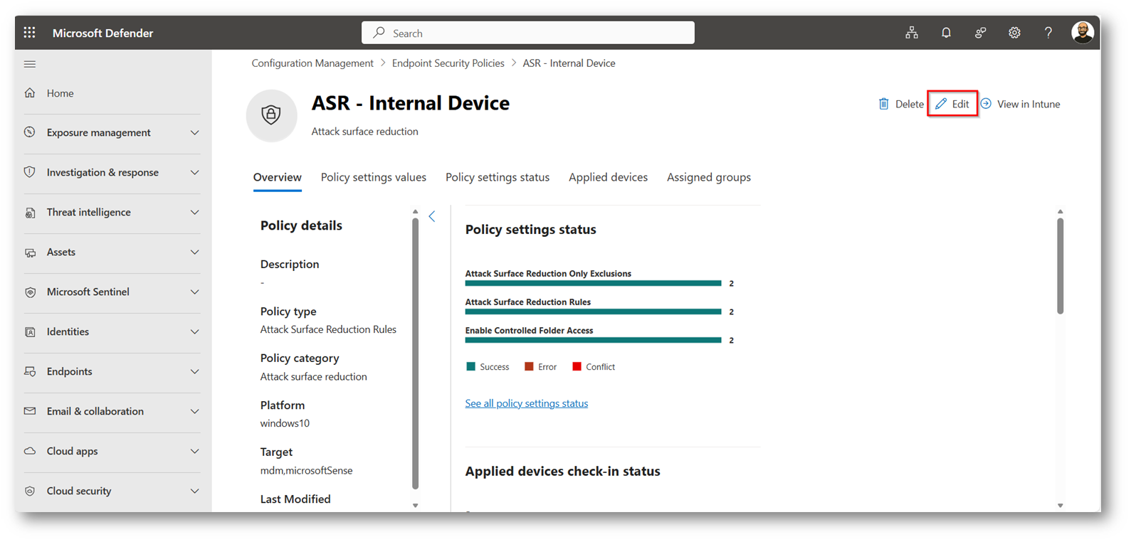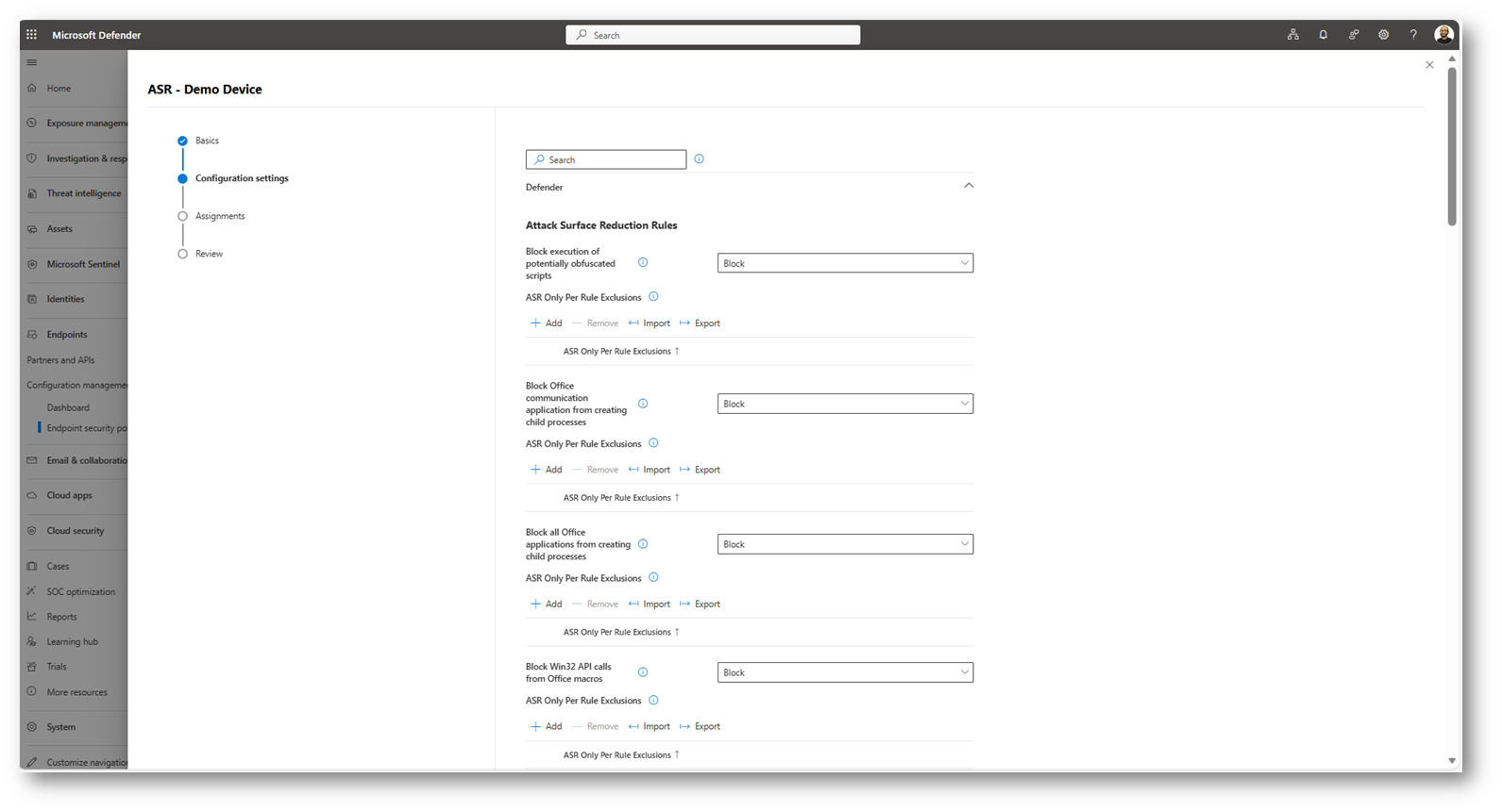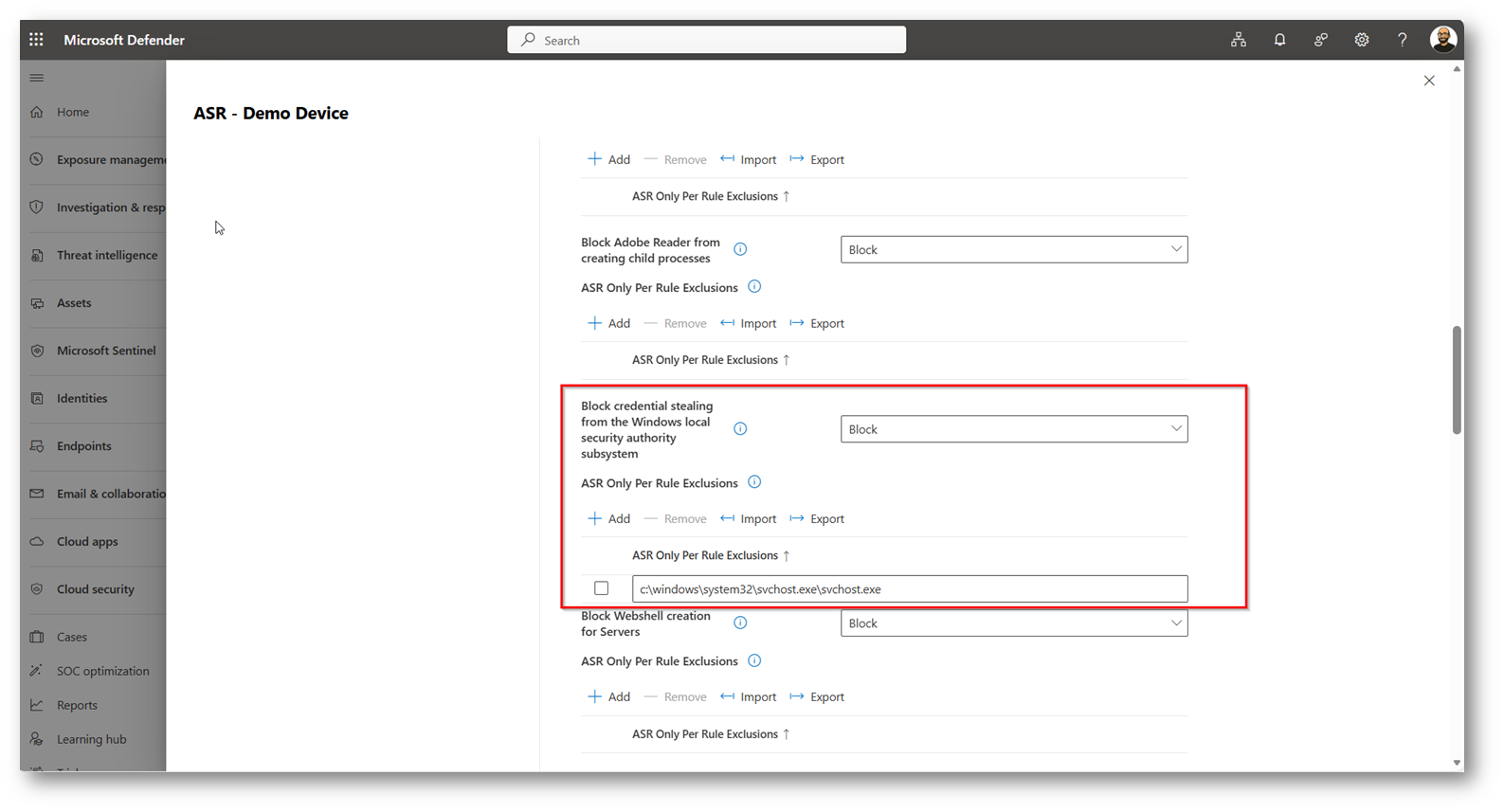 Ora eseguo un refresh della pagina relativa alla policy “ASR – Demo Device” per darvi evidenza che l’esclusione è stata applicata correttamente